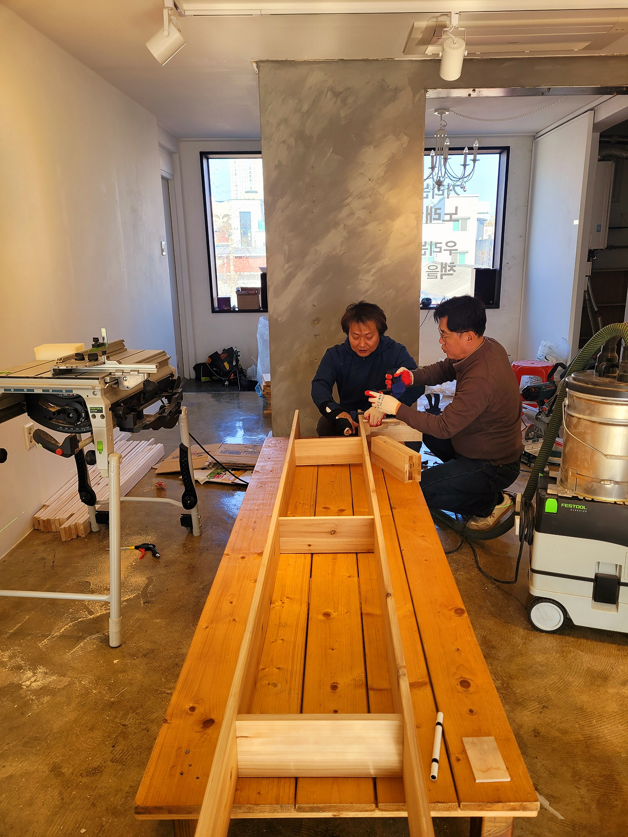 이틀간 큰 책장을 같이 짰다.