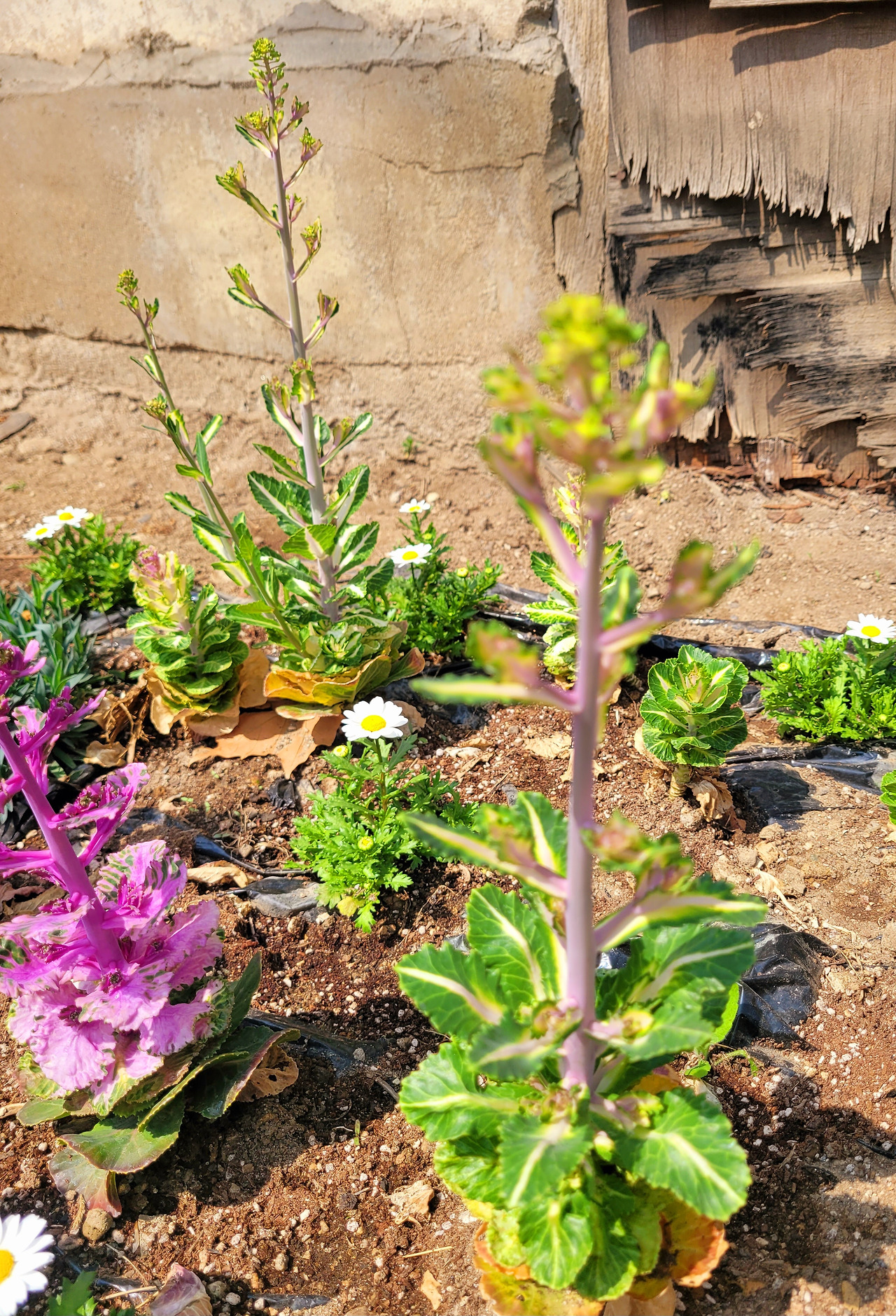 데이지는 벌써 꽃잎을 힘차게 폈는데, 봄동 이파리는 장대 같은 꽃대를 세우느라 온 힘을 쏟고 있다. 봄동이 뚫고 지나온 겨울을 생각했다.