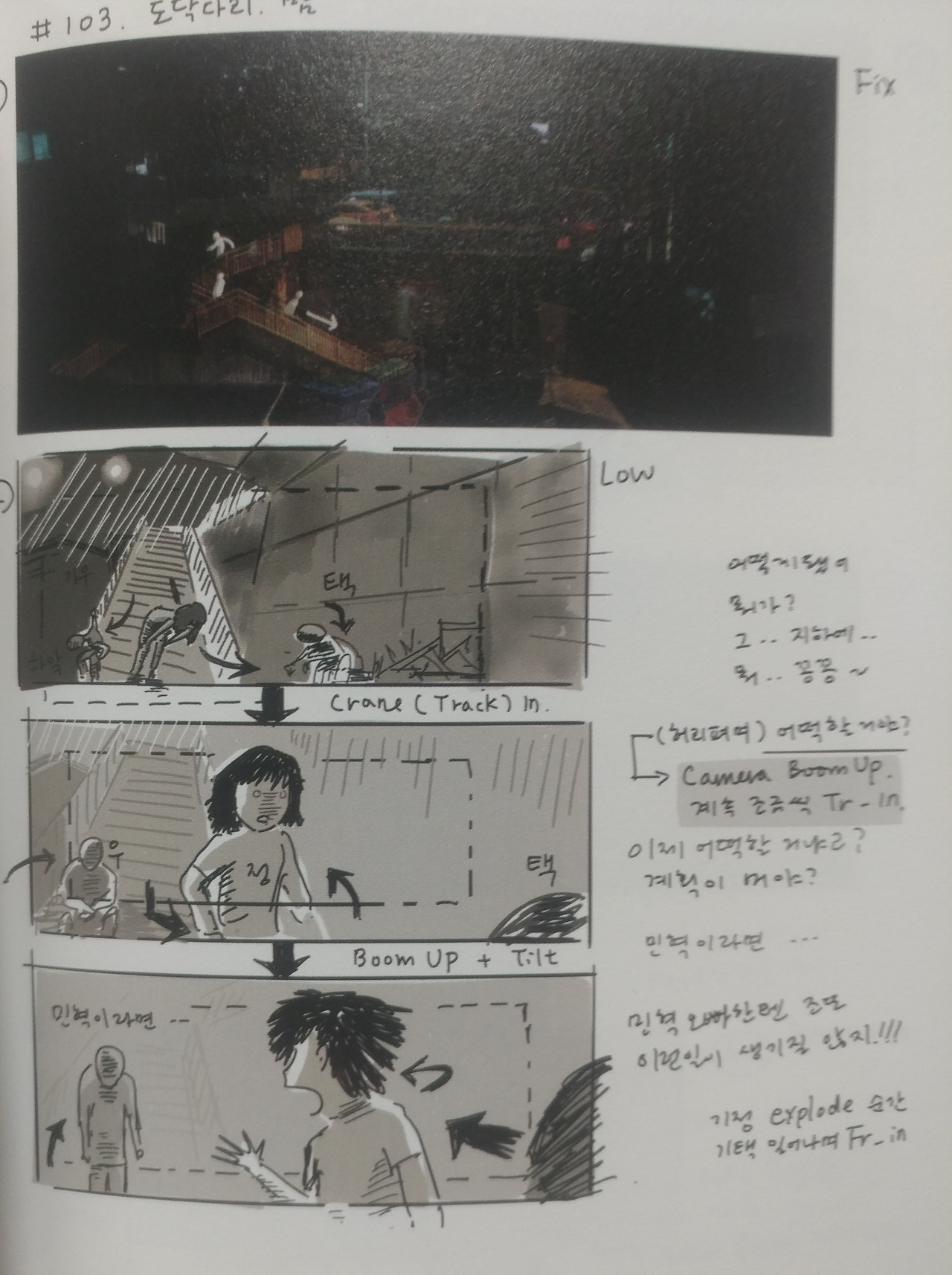 영화의 장면과 똑같다. 난생처음 보는 스토리 보드북이라서 다른 감독들도 이렇게 하는지는 모르겠다.