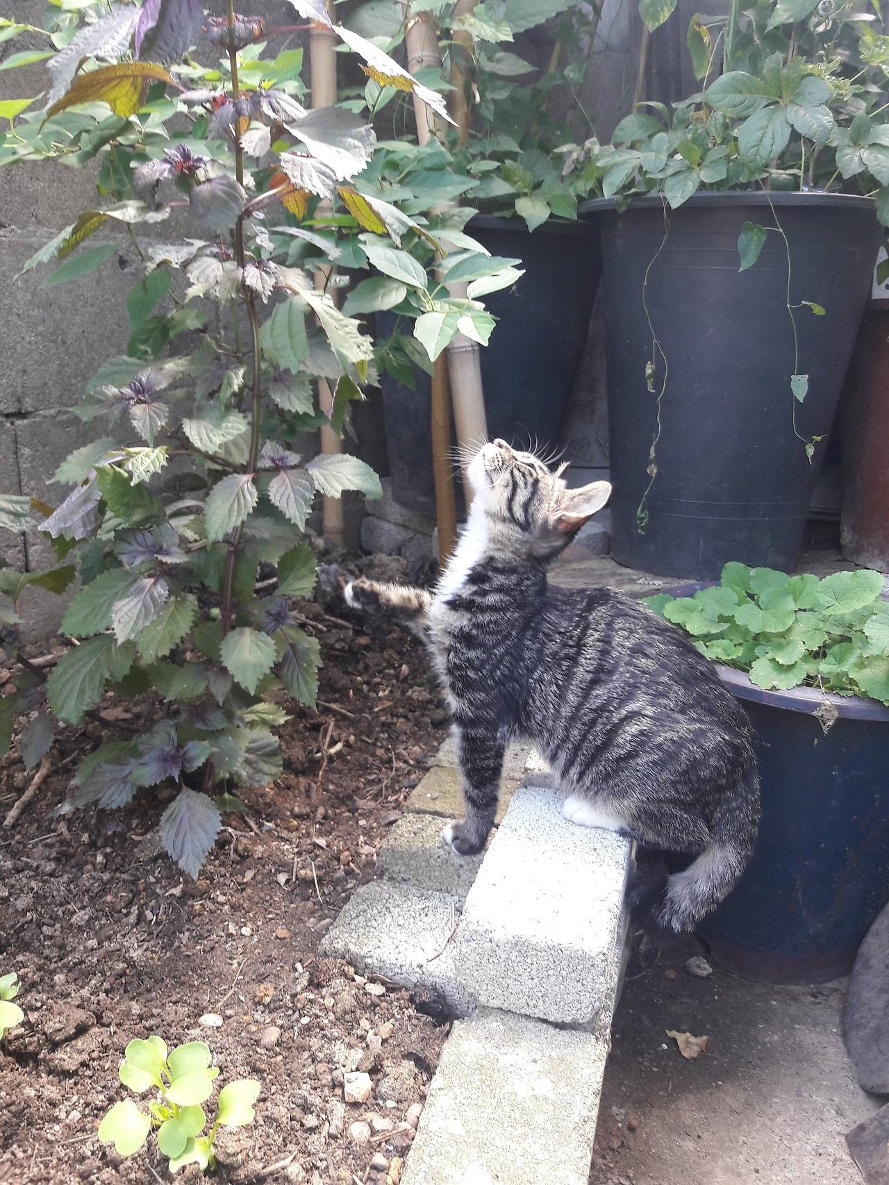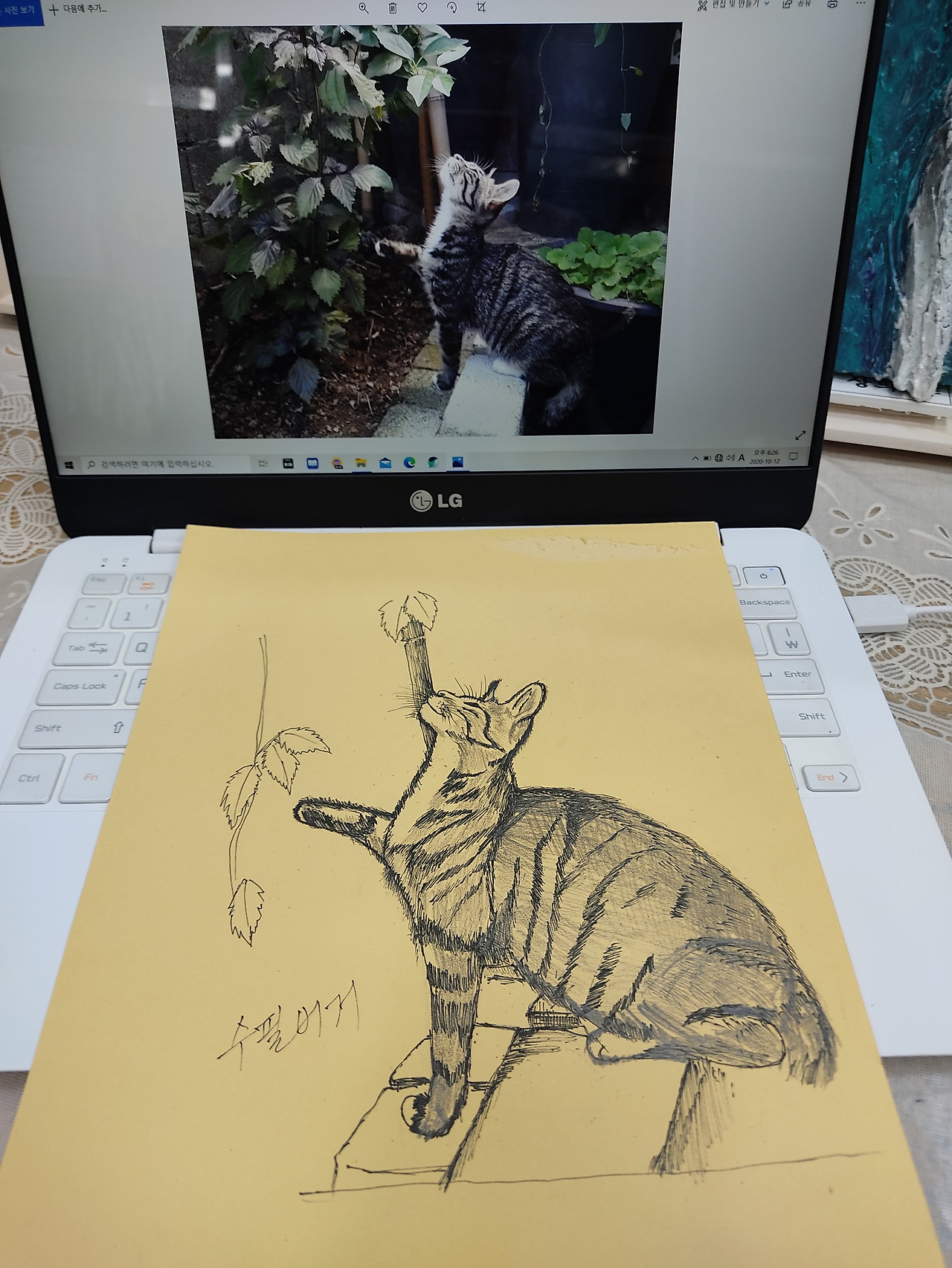 며칠 반복하더니 뒷 뜰 끝자락의 작은 텃밭까지 나간다. 형체는 보이나 보다. 바람에 살랑거리는 작물의 이파리를 잡으려 한다. 뜨겁고 찬란한 햇빛 아래서 앞 발을 휘적이는 새끼 냥이를 보는 데 문득 눈 가장자리가 뜨끈해졌다.