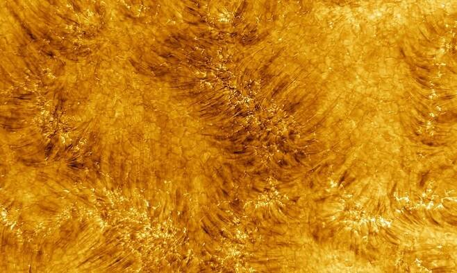 [머리카락이 흩날리는 듯한 태양 채층의 플라스마 분출 모습. 미 국립태양천문대(NSO) 제공]
