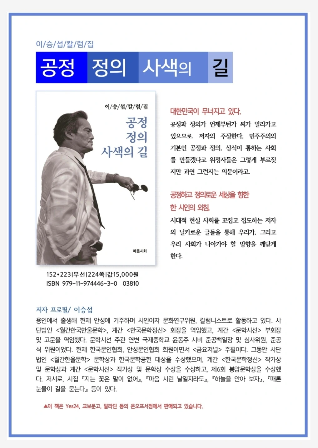 [이승섭 칼럼집]한국문학은 현재 이념의 사상과 상대성 원리로 갈림길에 있다고 생각한다.