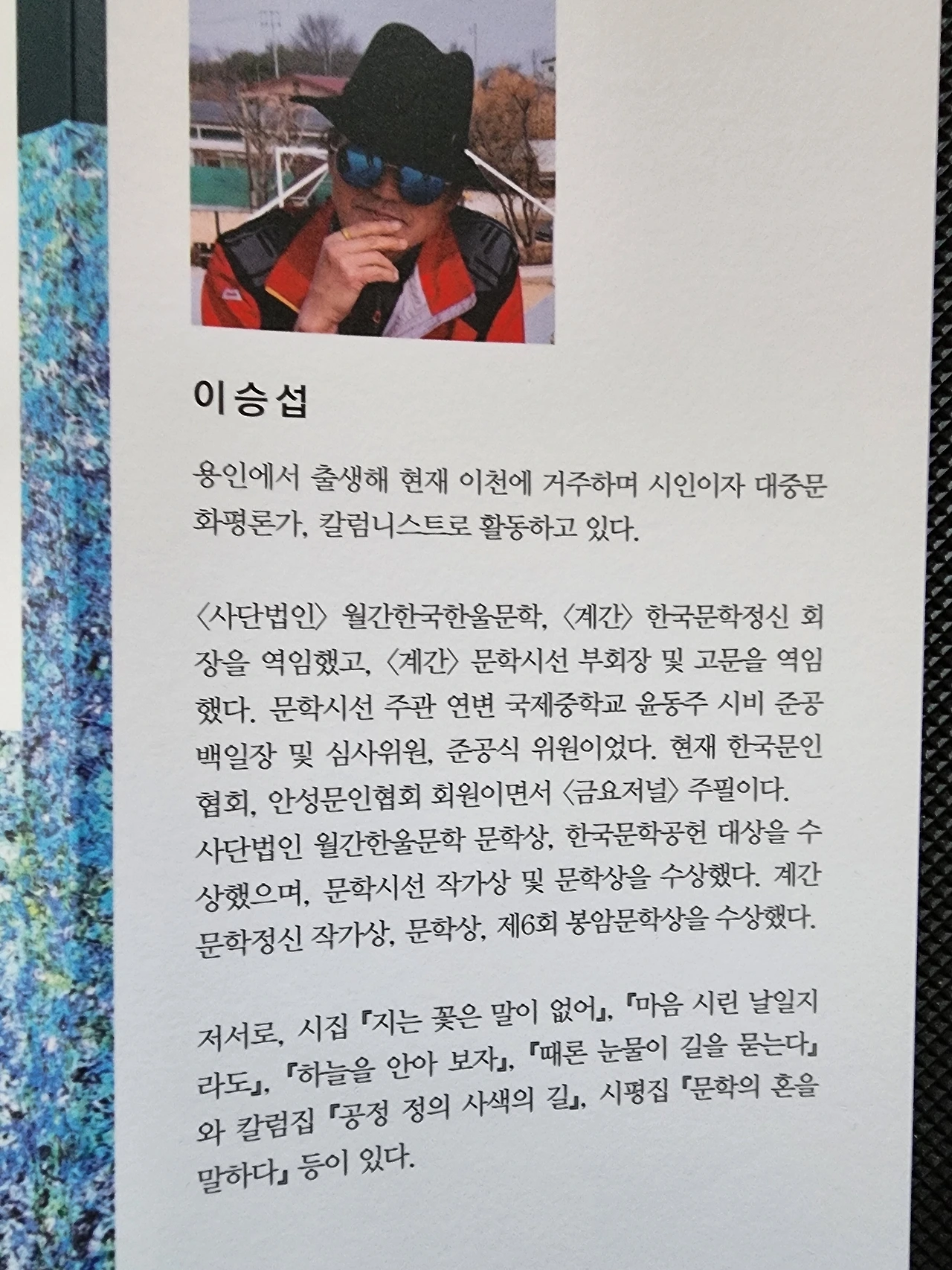 현 :금요저널 주필. 칼럼리스트. 대중문화평론가 전(사) 한국 한울문학 예술인협회 회장 3년 역임. 한국 예술인협회 사무총장 역임 (작가나 시인이 되고자 하시는 분만 일독을 권함