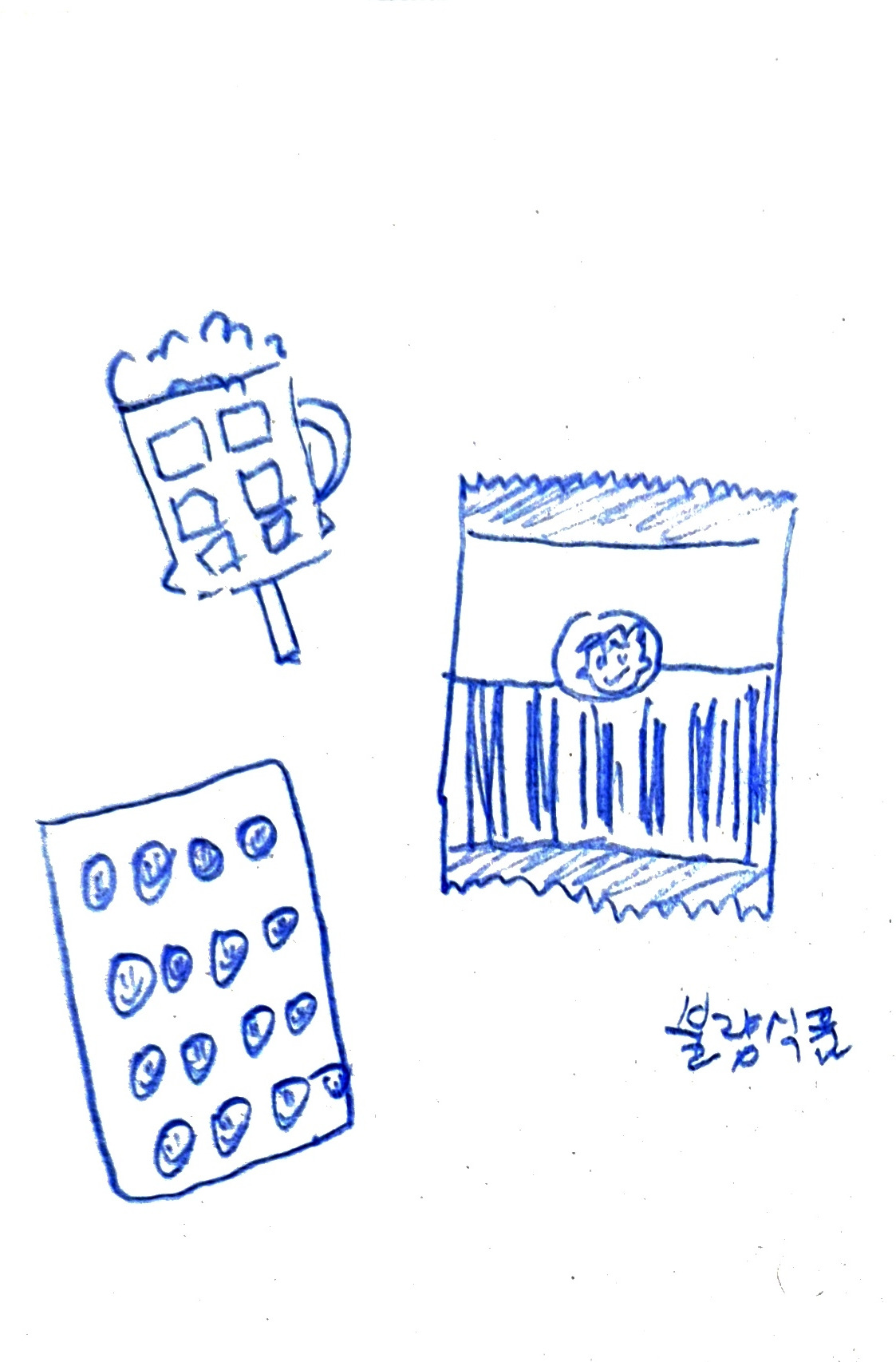 종류도 다양했는데 어떤 것은 웃는 모습이 그려진 작은 알약 사탕 같은 것이 있었습니다. 지금 약 포장이 되어있는 것처럼 안에 들어있어서 톡톡 눌러서 까먹는 즐거움이 있었습니다. 초등학교 1, 2학년 정도 되었을 무렵 담임선생님께서 약사 놀이였는지 병원 놀이인지를 한다고 아이들에게 이런 걸 몇 개 사 오라고 하셨던 기억이 있습니다. 학교에서 사 오라고 했으니 당당하게 엄마랑 마트에 가서 평소처럼 한 개가 아니라 몇 개를 집는데 괜히 설레고 즐거웠던 기억이 있습니다.