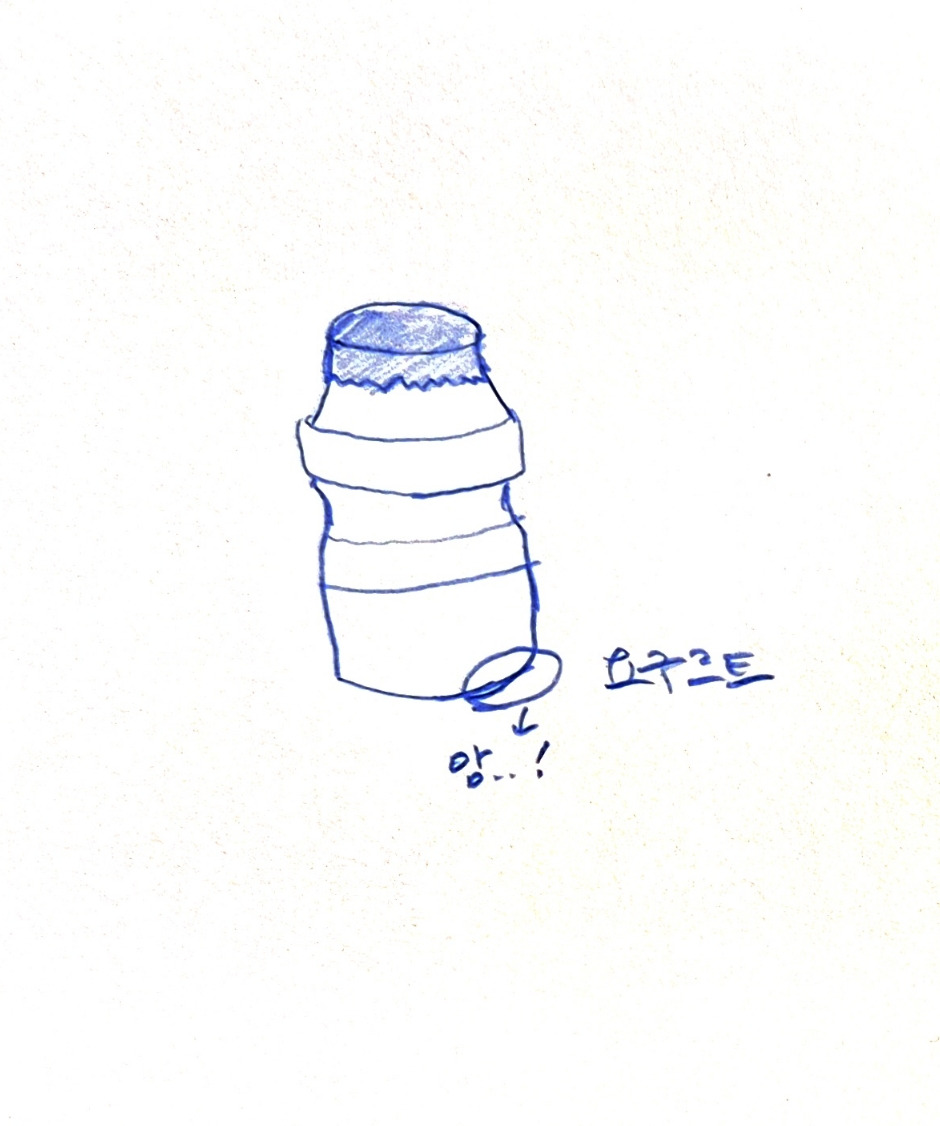 이렇게 하면 틈이 상당히 작아서 요구르트가 너무 많이 나오지도 않고, 또 적당히 빨아들이면서 마셔야 돼서 왠지 입도 가만히 못 놓아두는 아이들에게는 딱 맞는 방법이 아니었을까 싶습니다. 굳이 마시라고 한 곳이 아니라 다른 곳으로 마셔서 그런지 왠지 특별하다는 기분과, 조금씩 빨아먹을 수 있다는 즐거움, 그리고 밖에서는 못한다는 생각에 더 재미있었던 것 같습니다. 집 안에서 먹을 때에는 엄마가 물어보면 항상 뒤로 먹고 싶다고 말했던 것 같습니다.