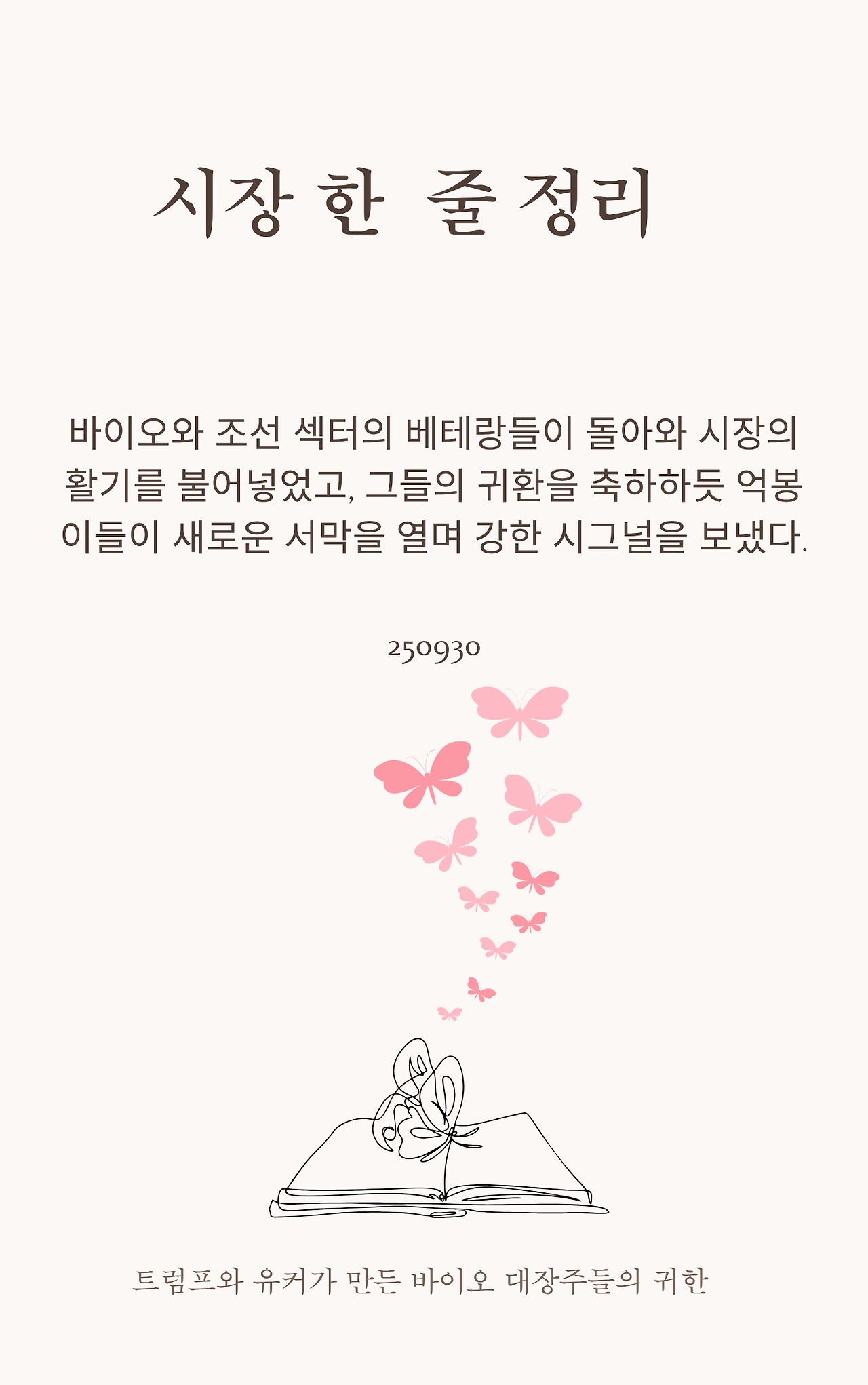 2025년 9월 30일 화요일, 코스피 지수는 3424.60(-0.19%), 코스닥 지수는 841.99(-0.56%)를 기록하며 하락 마감했습니다. 겉보기엔 힘없는 시장이었지만, 그 속을 들여다보면 바이오/미용과 조선/방산 섹터라는 뚜렷한 주도 흐름이 펼쳐졌습니다. 특히 바이오 섹터는 트럼프의 대마 규제 완화 검토 소식과 중국 유커들의 소비 급증이라는 두 가지 강력한 재료를 등에 업고 오랜 침묵을 깨고 돌아왔습니다. 조선 섹터 역시 LNG선 수주 기대감과 기업들의 긍정적인 소식으로 시장의 든든한 버팀목 역할을 했습니다.