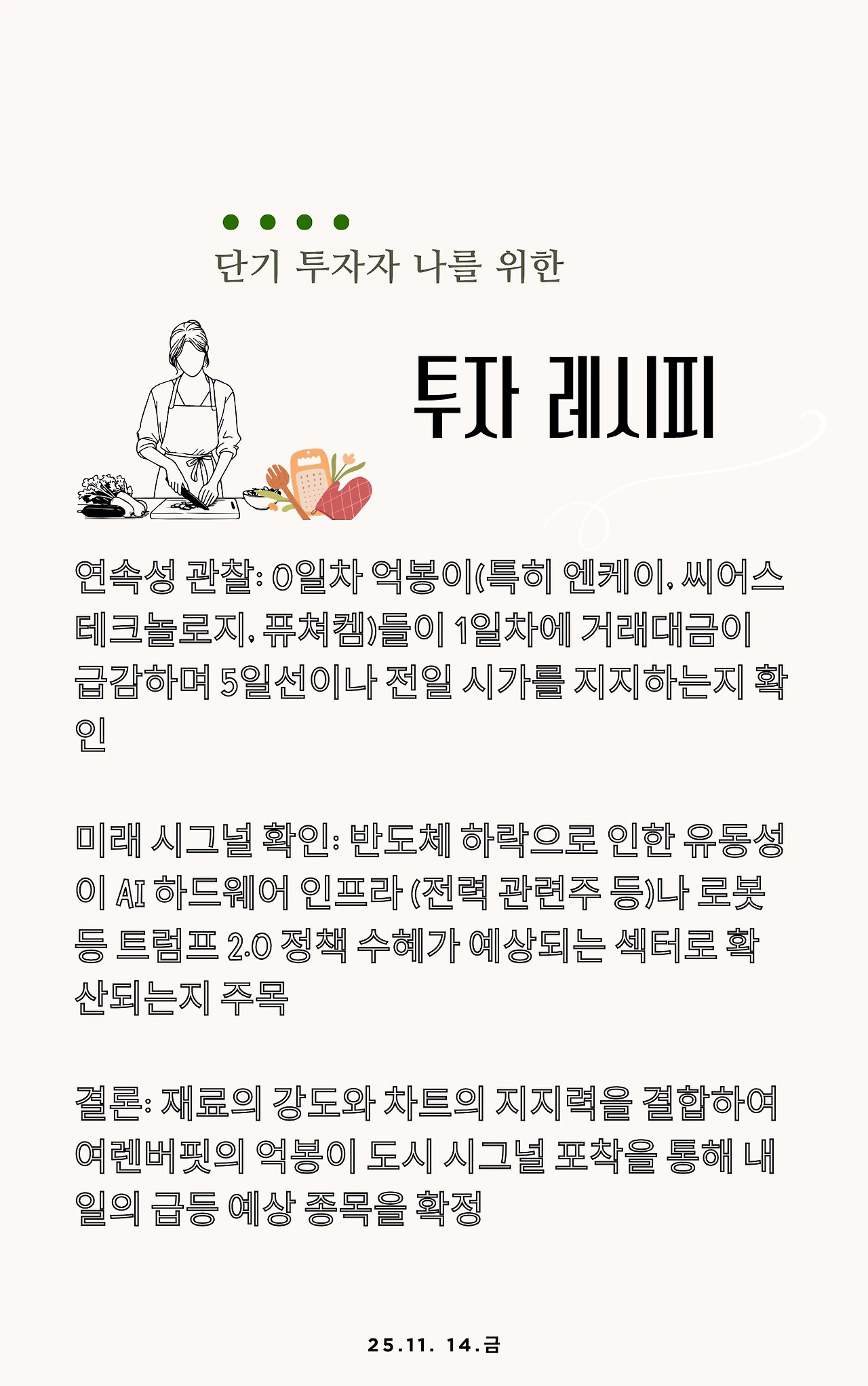 본 내용은 <b>2025년 11월 14일</b>. 국내외 시장 시그널 분석에 기반하며, 투자 추천이 아닌 정보 공유 목적으로 작성되었습니다. 모든 투자 결정과 결과는 본인에게 있음을 알려드립니다.