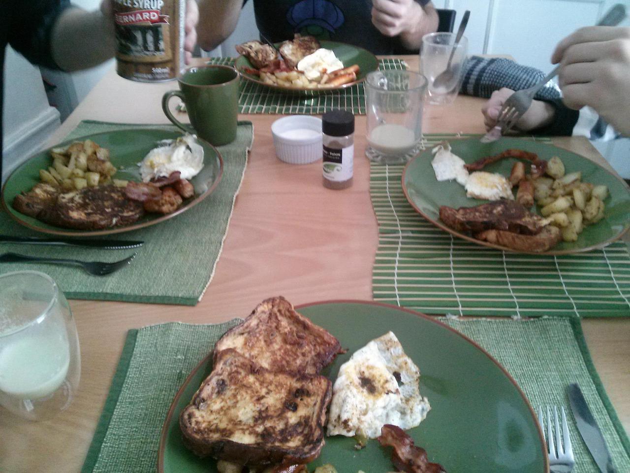 하루는 퀘벡식 브런치를 만들어 주겠다며 남자 셋이 부엌에서 소꿉장난을 하더니 그럴싸한 브런치를 만들어 주었다.