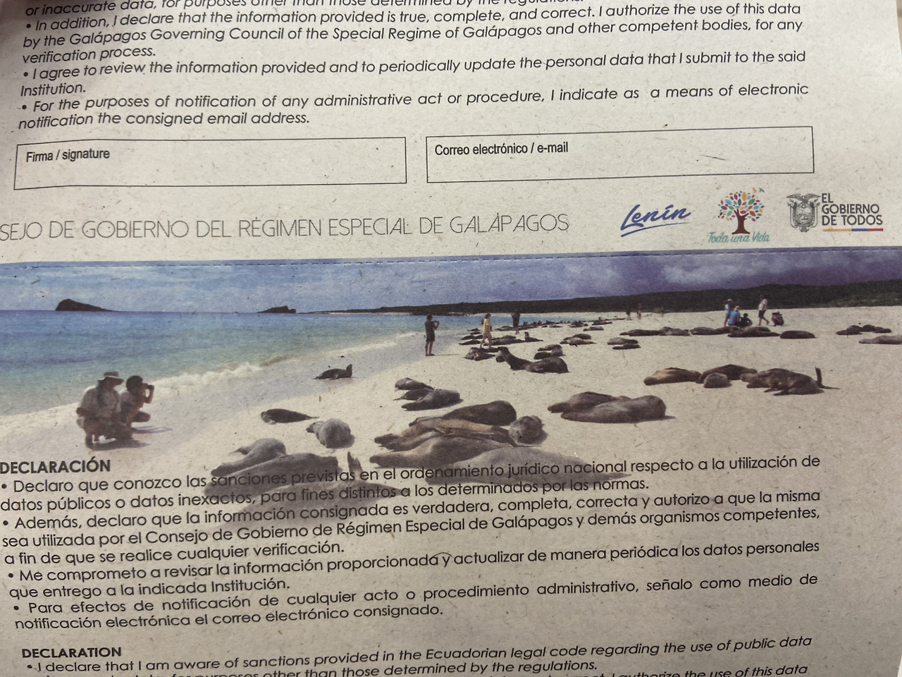 PS. 마음의 여유가 있다면, 입도 허가증 제일 아래 갈라파고스 해변 위 물개들을 발견할 것이다. :)