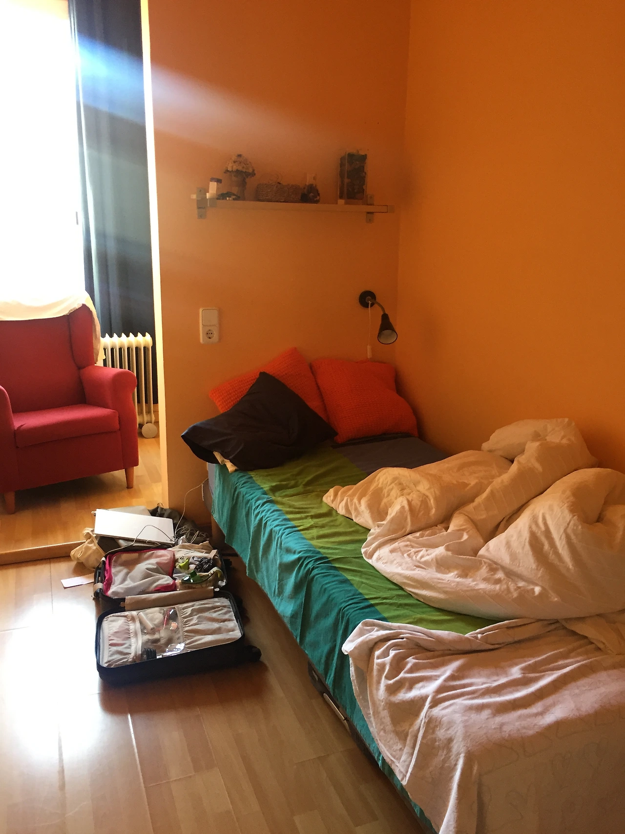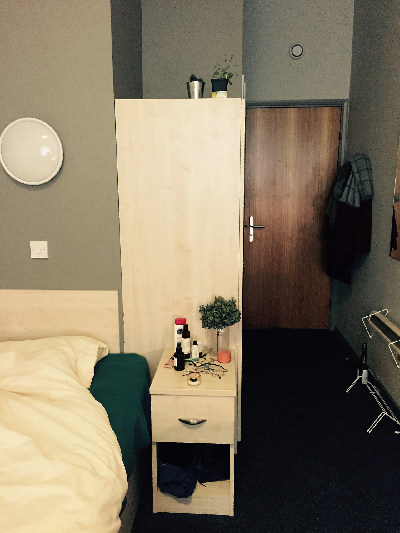 총 6인이 지내는 플랫. 부엌만 공유하고 자기 방에 독립된 화장실이 있다. 침대가 너무 작아서 친구가 놀러 올 때면 강제로 붙어서 잤던 기억이 난다. 특히 이번 여름은 에어컨도 없는데 유난히 더워서 둘이 침대에 엉켜 자다가 결국 하나가 바닥으로 내려가서 잤다. 약 1년간 살았던 '내 공간'이라서 나름 정도 많이 들었다. 한국에서 가져온 그림과 엽서를 곳곳에 붙여 소박한 인테리어도 했다.