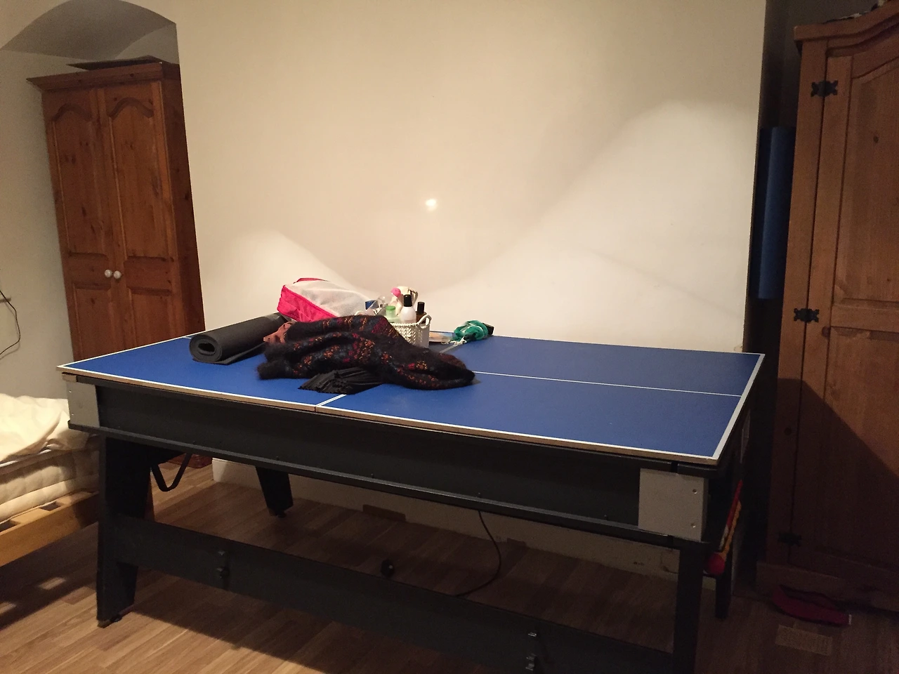 하지만 이 방에도 단점이 있다. 바로 방 안을 떡하니 차지한 정체불명의 탁구대다. 국가대표 탁구 선수가 꿈인 사람의 방을 꾸민다면 이 방 인테리어가 딱이겠지. 하지만 나는 아니다. 처음엔 거대한 식탁 겸 책상이 생겼다고 좋아했지만, 이 탁구대를 볼 때마다 이것이 방인지, 창고인지 구분이 가지 않아 마음이 혼란스러웠다. 나중에 이 탁구대는 온갖 잡동사니를 올려두는 선반이 됐다.
