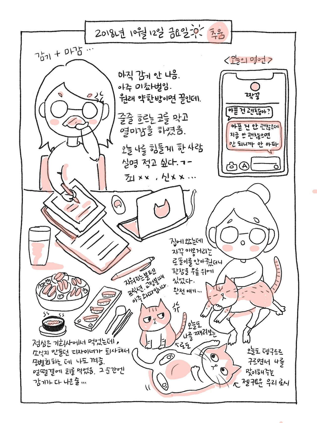 오늘도 휴지로 코를 붙잡고 마감했다.