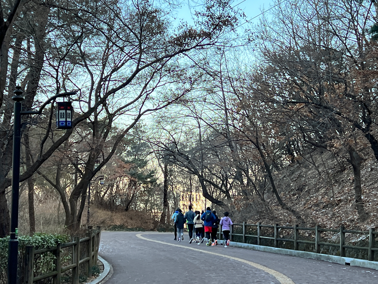 시작할 때는 가파른 오르막도 없고, 눈이 거의 다 녹아 달리기 편했다. 달리기에 진심인 분들과 함께, 평소 달리고 싶던 장소에서 달리고 있다는 사실에 벅차오르는 감격을 주체하기 힘들었다. 뿐만 아니라 토요일 아침, 영하 10도가량의 몹시 추운 날씨인데도 남산을 달리는 다른 달림이들을 만나며 그들과 서로 응원을 주고받으며 달릴 수 있어서도 좋았다.