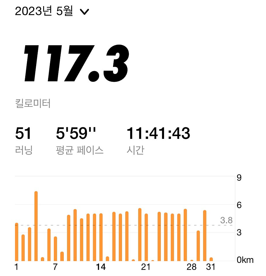 즐거운 일상이자 소소한 성취가 반복되었다. 제대로 달린 지 한 달 반 만에 바로 월 누적거리 100km를 돌파했다.