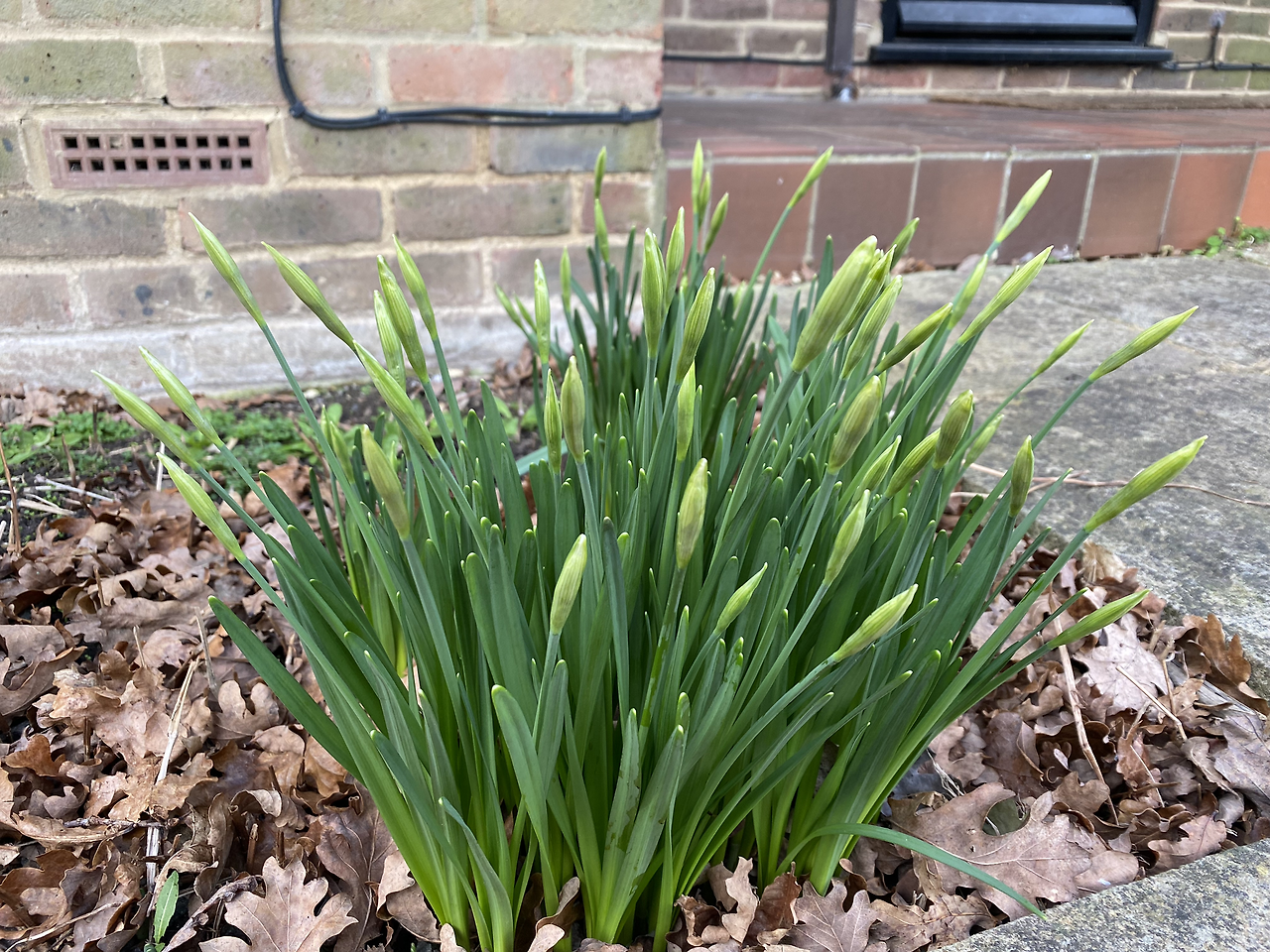 예쁜 목소리의 주인공을 찾아 목이 뻐근하도록 한참을 나무를 올려다보기도 하고 코믹한 까마귀나 갈매기 소리에 헛웃음이 나기도 한다. 담장 위를 지나던 회색 다람쥐는 인기척을 느끼곤 제자리에 얼어붙었다. 안 움직이면 안 보이는 줄 아는가 보다. 수선화의 초록 줄기가 아직 뱅뱅 맴돌고 있는 겨울바람을 뚫고 나와 용감하고 꿋꿋하게 군락을 지어 서 있는 모습도 보인다. 아직 추운데 괜찮겠니?