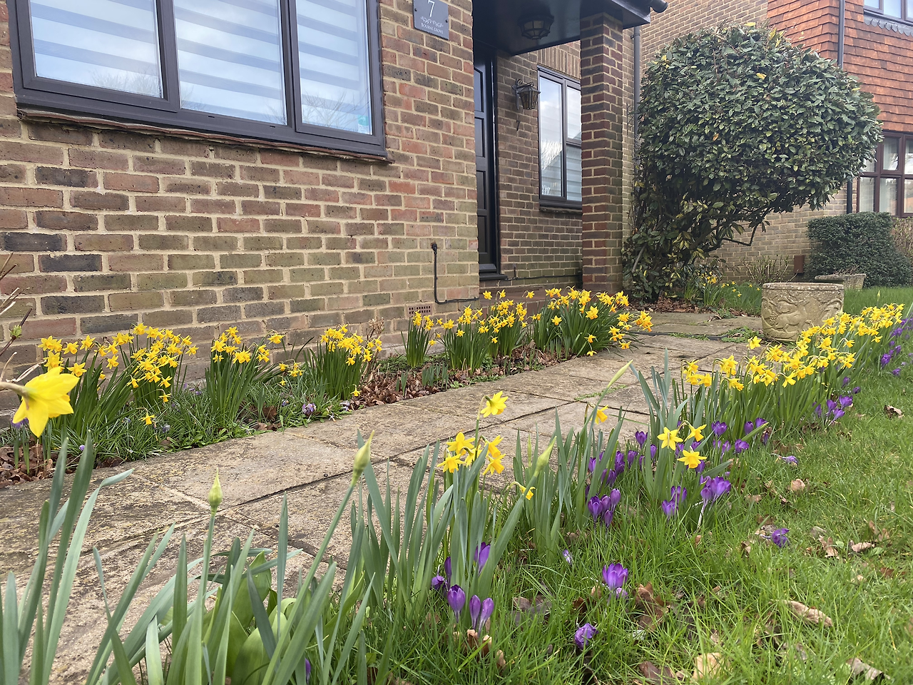 우리 가족은 하루에도 몇 번씩 꽃 길을 걷는다. 노란 수선화와 주황을 품은 보라색 크로커스가 양쪽으로 늘어선 보도를 지나야 현관이 나오기 때문이다. 레드카펫이 전혀 부럽지 않은 꽃길이다.