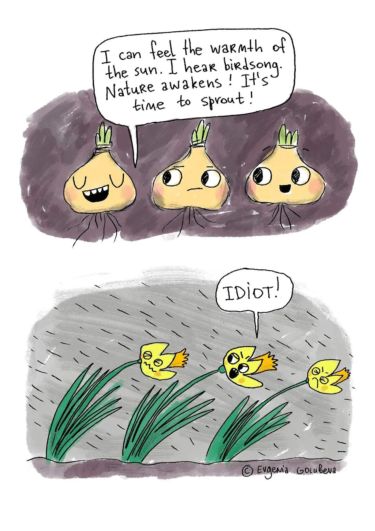 '태양의 따스함이 느껴져. 새들이 노래하고 있어. 자연이 깨어났다고! 싹을 틔울 때가 된 거야!'