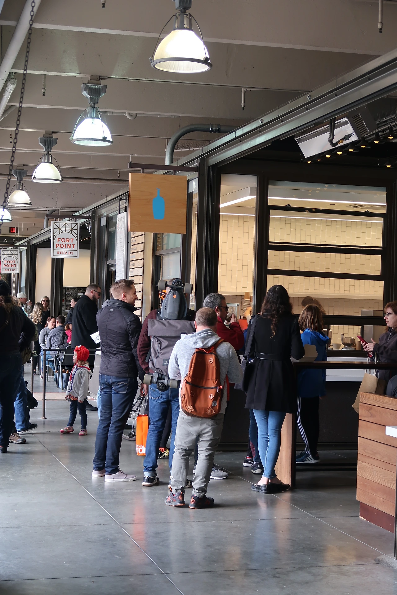 페리플라자 파머스마켓의 빌딩에는 두 개의 블루보틀 매장이 있다. 둘 다 일종의 키오스크(kiosk) 매장이다. 평일에도 손님이 이어진다고 하는데, 주말에 가보면 건물 내에서 가장 인기 많은 매장이란 걸 실감할 수 있을 만큼 손님이 많다. 많은 손님들이 스마트폰과 카메라로 '인증샷'과 동영상을 찍는다.