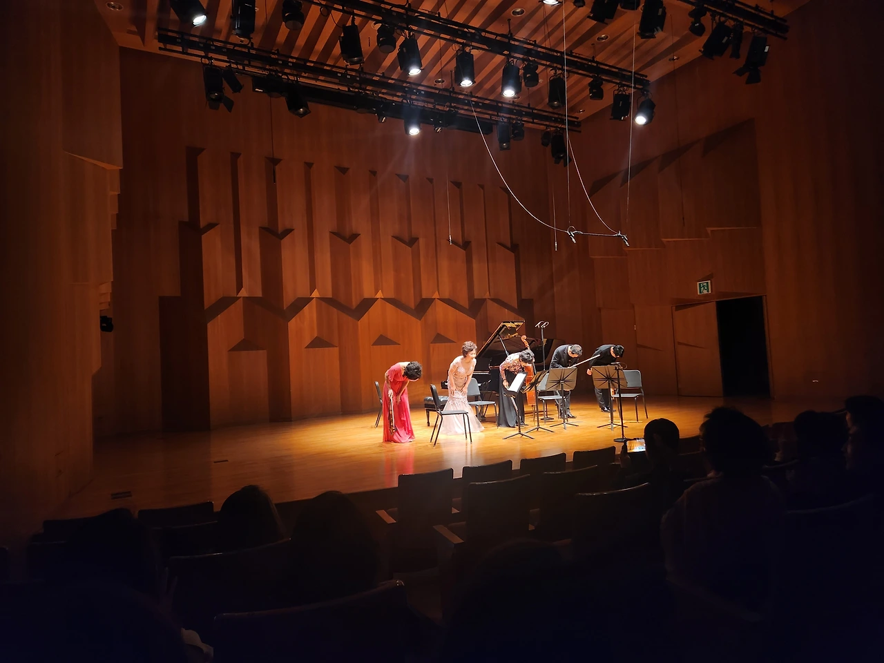 추가로 음향에 대한 코멘트를 약간 해보자면... 1부와 2부에서 각각 사중주와 오중주로 총 악기 수가 달랐는데, 제2바이올린 한 대가 추가되는 것이 무대의 음향 지형을 완전히 바꿔놓는 신기한 경험이었다. 바이올린 2대가 구현하는 텍스쳐의 밀도, 범위, 두께가 초래할 수 있는 무대를 장악하는 힘의 차이를 여실히 느낄 수 있었던 공연.