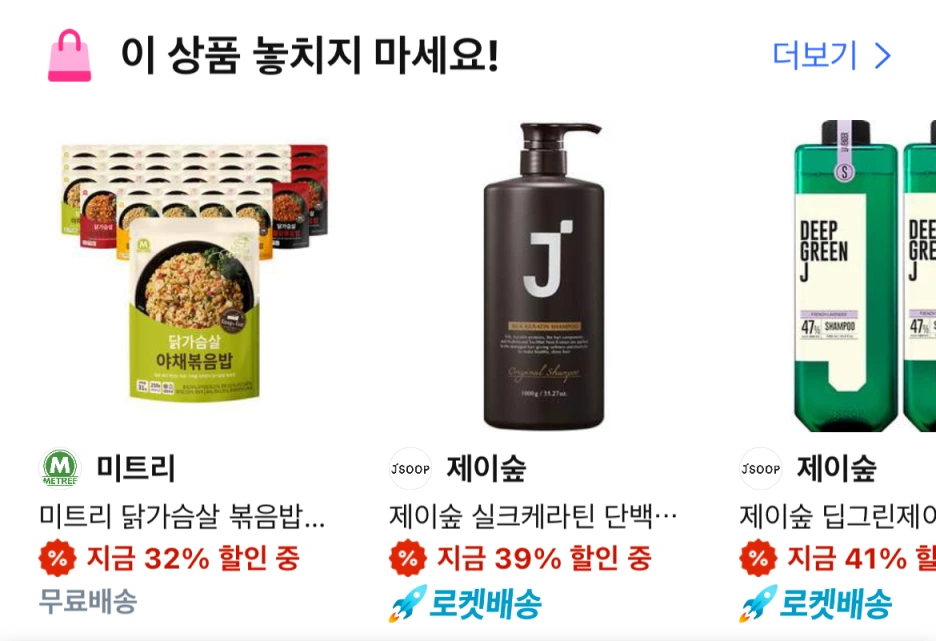 근데 이게 웬걸? <이 상품 놓치지 마세요>라는 Title에서 내가 딱 원하는 상품을 추천해 줬다. 검색하지 않고 바로 구매한다.