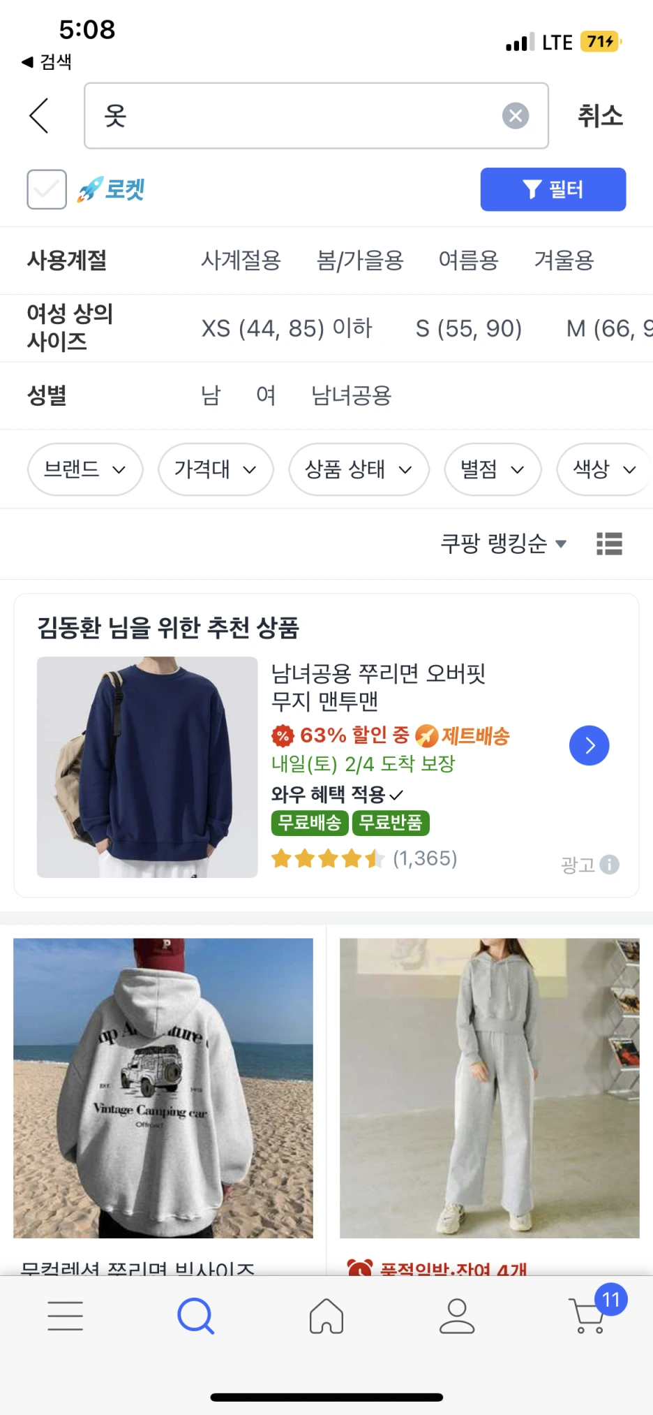 쿠팡은 이러한 나의 Pain points를 파악한 듯 상단 레이아웃으로 "그래서 네가 원하는 옷이 뭔데? 원하는 옷을 잘 찾을 수 있도록 우리가 먼저 필터로 추려줄게."라고 보여주고 있다.