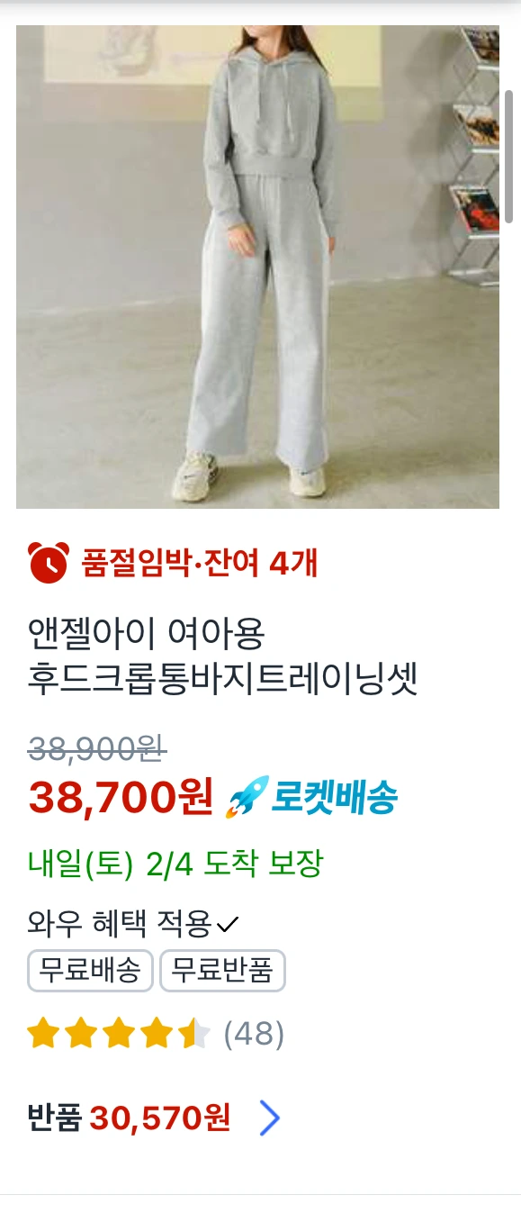 쿠팡은 <품절임박>이라는 단어로 손님에게 조급함을 느끼게 하고 있고 <잔여 4개>라는 구체적인 숫자로 4개밖에 안 남았는데 지금 살까?라는 구매 욕구를 불러일으키고 있다.