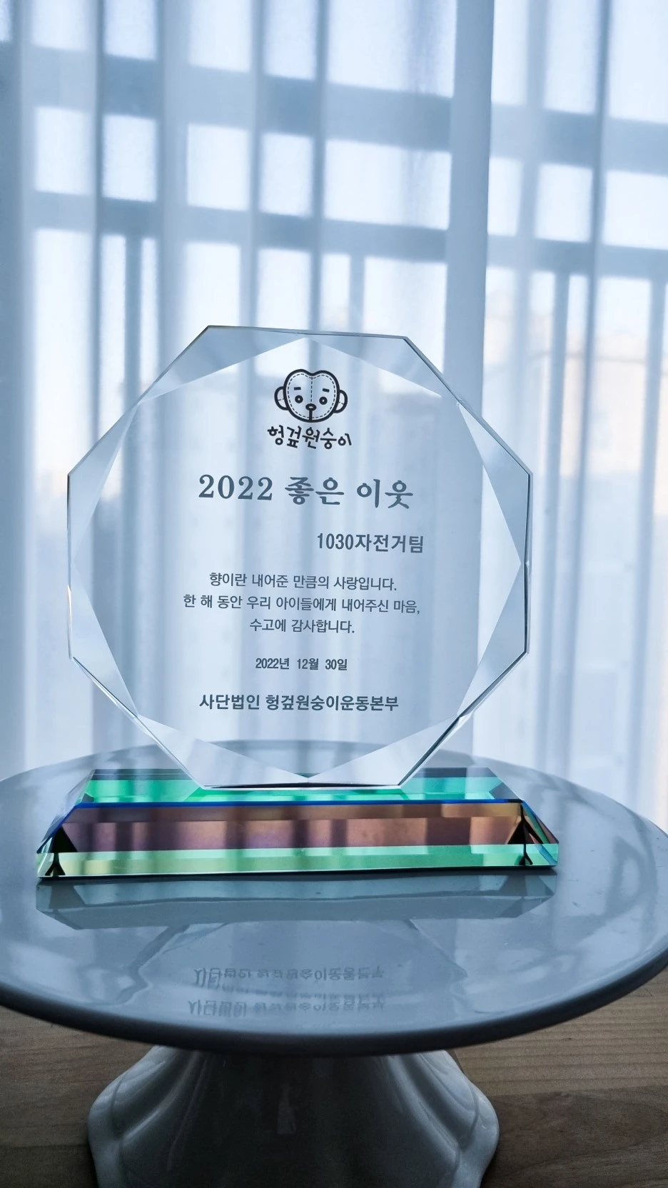 재작년에는 아이 둘을 데리고 나 홀로 반찬 봉사를 다니다가 작년부터는 자전거팀과 함께 반찬 봉사를 다니고, 매달 100만원씩 기부금을 내던 터였기에 감회가 새로웠다.