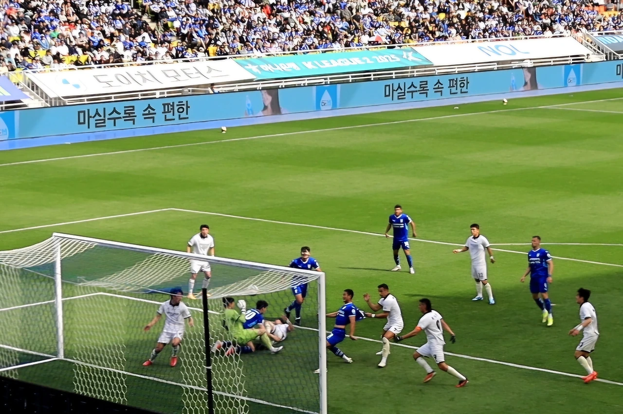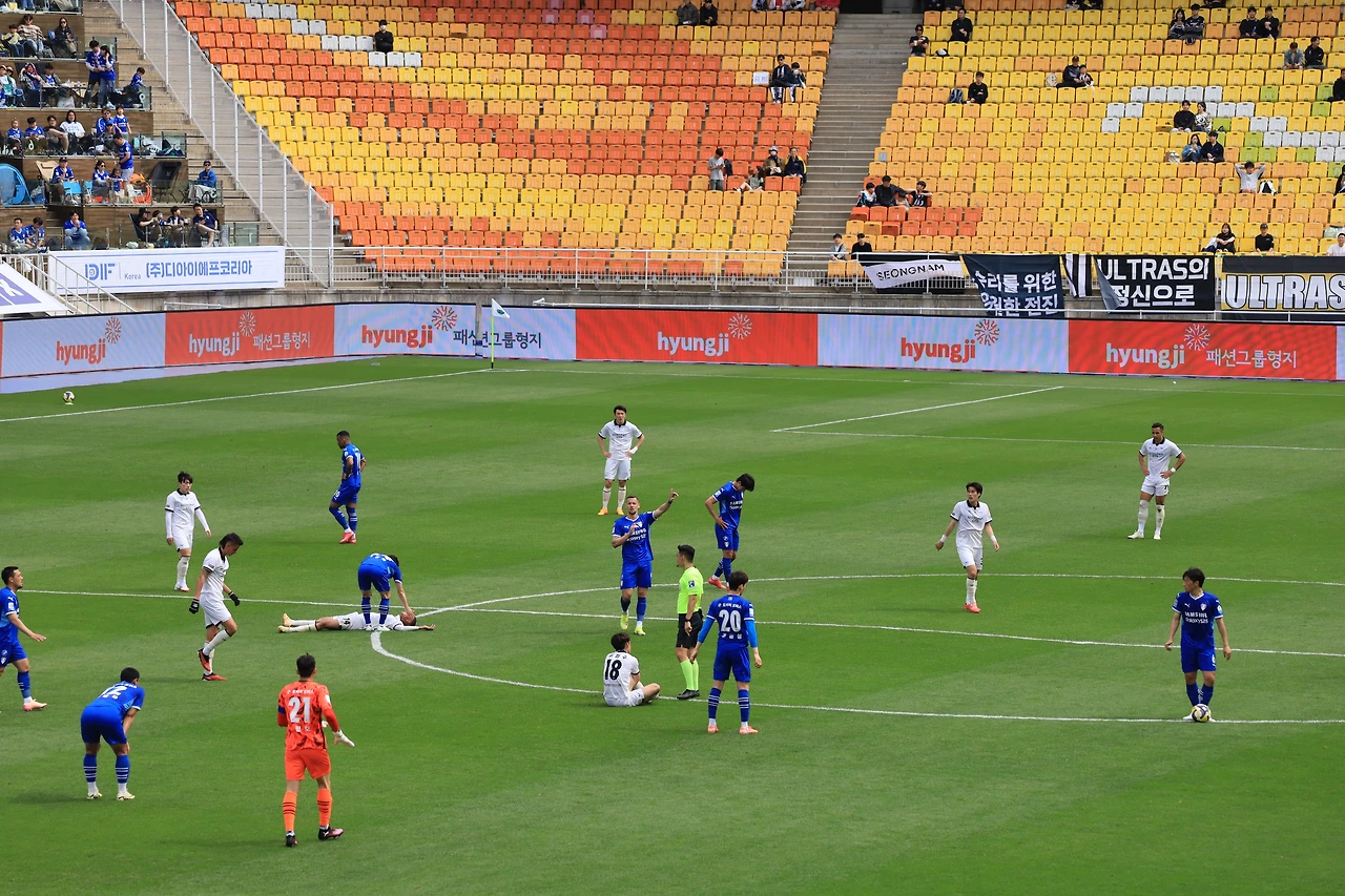 끓었던 분위기는 십 분을 넘기지 못했다. 성남 후이즈의 동점골이 터졌다. 크로스가 너무 쉽게 올라왔고 잘라 들어가던 성남 공격수의 무빙은 페이크 효과로 작용했다. 후이즈는 수비수를 등지고도 한 번의 찬스를 정확한 골로 연결시켰다.