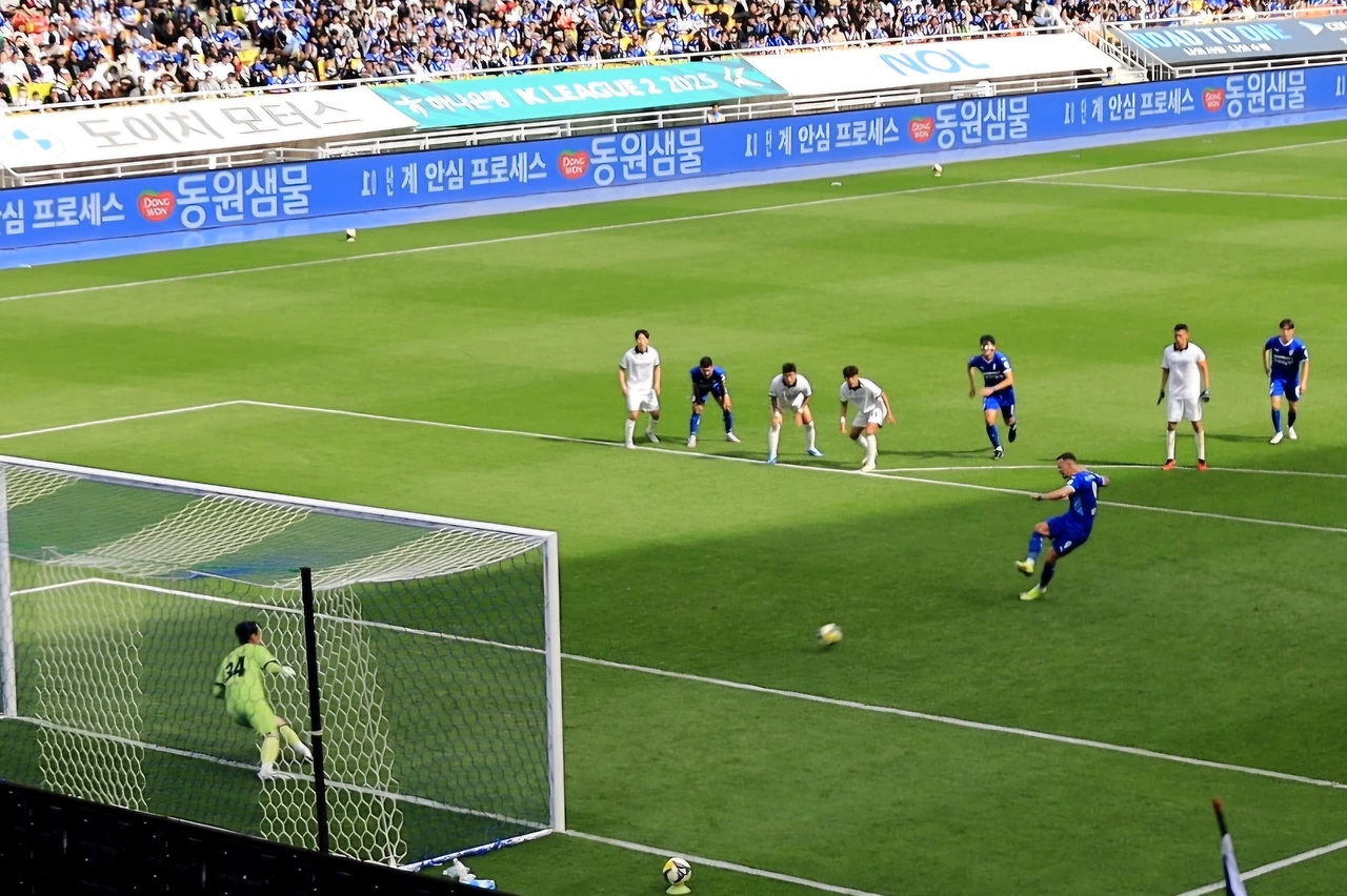 이후 수원은 총력을 다해 공격을 퍼부었다. 대부분의 시도는 성과로 이어지지 못했다. 실마리를 푼 선수는 막내 박승수였다. 특유의 스피드와 방향전환 스킬로 상대 수비를 흔들었다. 그러다가 유리한 위치에서 프리킥 찬스를 얻어냈다. 이 경기의 서사를 뒤바꾸게 만든 프리킥이었다.