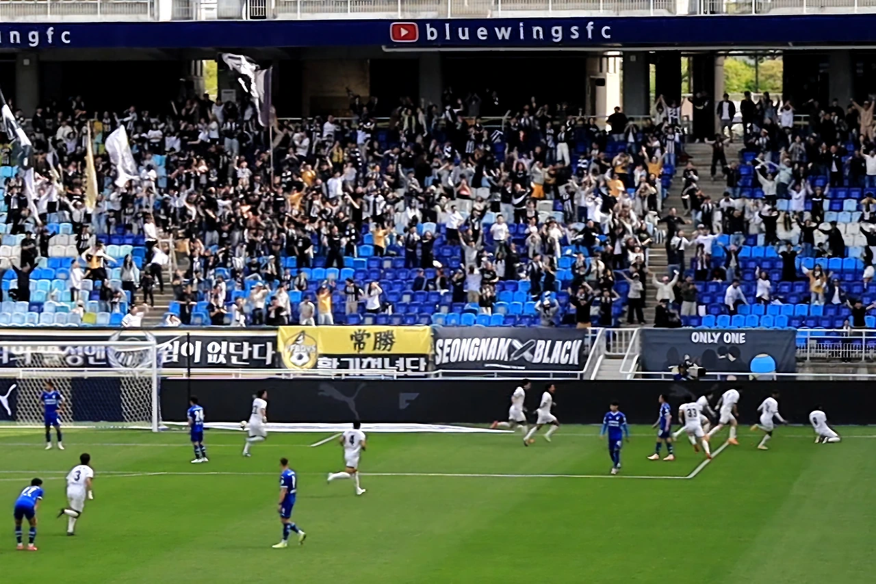 무패의 성남에게 선제골을 넣은 것이다. N석이 끓어올랐다. 승리의 기운이 퍼지자 '청백적의 챔피언' 도중 모두가 앉았다가 일어나는 퍼포먼스도 진행되었다. 그 뒤에 일어날 상황은 그 누구도 예상하지 못한 채 기쁨을 만끽했다.