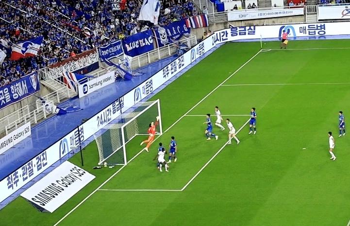그런데 또 경기장이 술렁거린다. 심판 주변에 몇몇 선수들이 몰려갔고 심판은 귀에 손을 갖다 댄다. 관중석에서는 '한 번 더!'라는 외침이 흘러나오고 있었다. 그 기대에 부흥하듯 심판은 다시 PK를 선언했다. 앞선 PK에서 키퍼가 먼저 움직인 것 같았다. 모두가 안도했고 일류첸코에 대한 믿음은 복원되었다. 그리고 더 힘차게 때린 슈팅. 이번엔 첫 번째 방향과 다른 오른쪽 방향이었다. 그런데 키퍼도 그곳으로 몸을 날린다. 공이 다시 튀어나왔고 골망은 평온했다.