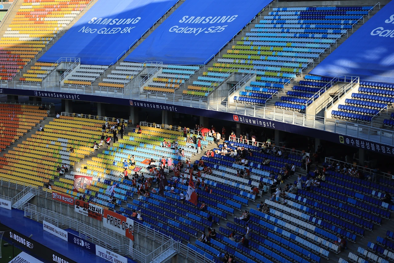 비소식이 있었지만 비는 보이지 않고 습한 무더위가 들이닥친 날씨다. 지난 홈경기 인천전 패배로 팬들의 기세가 꺾였는지 주차장도 블루포인트도 별다른 대기 없이 들어갈 수 있었다. 기세의 저하가 아니라 더위 때문일 거다. 아직은 시즌의 중반을 지나고 있을 뿐이니.