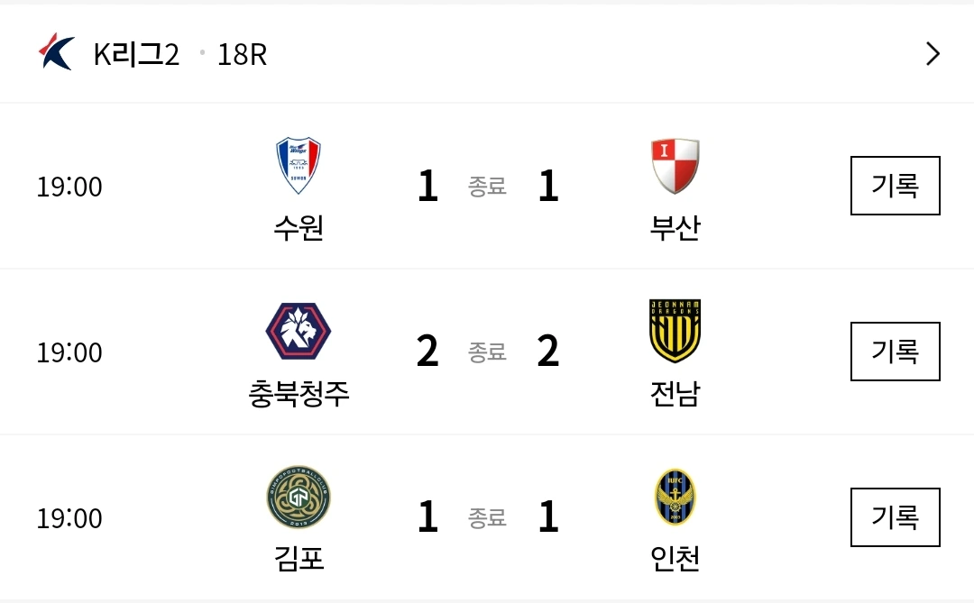 공교롭게도 이날 다른 구장의 경기 결과도 모두 무승부였다. 수원이 이겼다면 인천과의 간격은 좁힐 수 있었고 전남과의 간격은 넓힐 수 있는 기회였다. 다 이긴 경기를 놓치는 건 스포츠에서 일어날 수 있지만 반복이 의지를 능가하여 익숙함이 되는 일이 없기를 바랄 뿐이다.