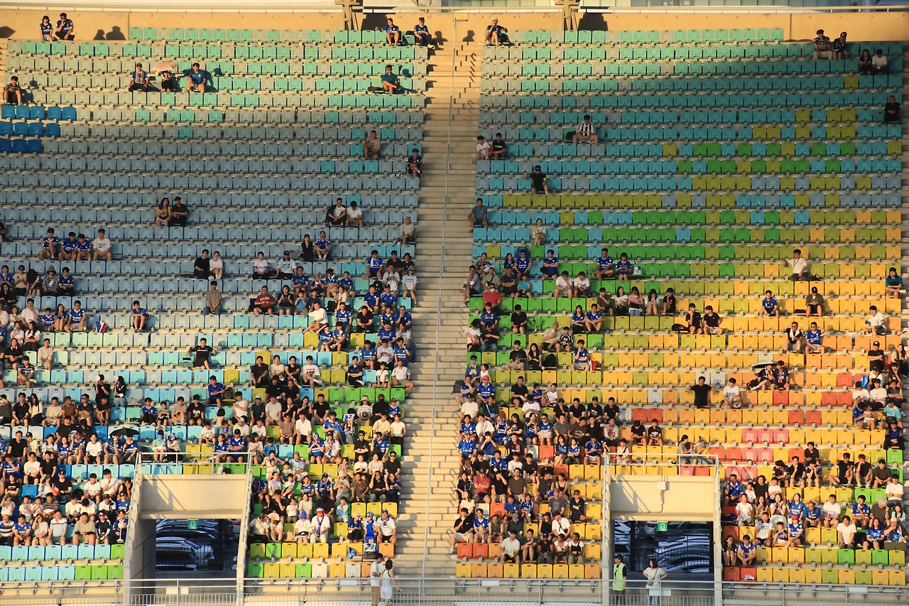 빅버드의 E석은 햇빛에 노출되어 있어서 이런 날씨에 관람하기는 괴로울 것 같지만 햇빛과 그늘이 만들어내는 풍경이 참 아름답다. 땀을 흘리며 자리에 고정된 사람들도 그 풍경에 일조하고 있다. 원정석에는 소수의 충북청주 팬들이 있었지만 깃발 수가 상대적으로 많아 위세가 있어 보였다.