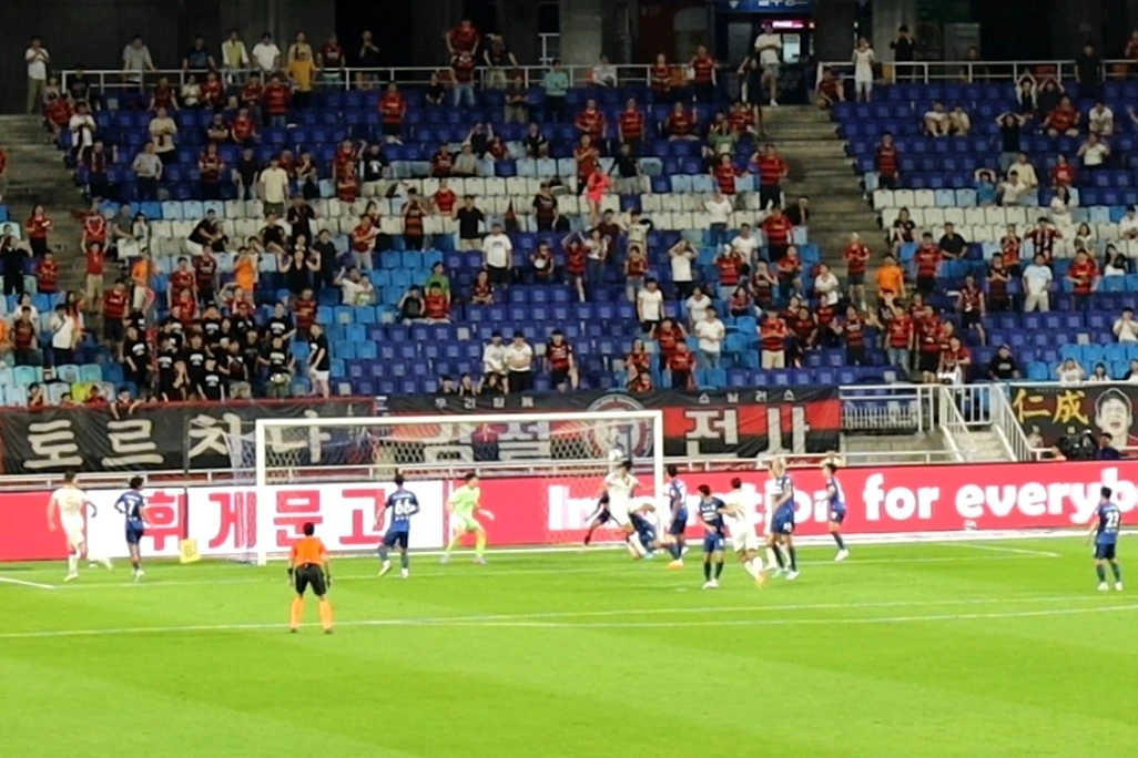 전진우 왜 넘어지고 그러냐고 말했던 건 입이었는데 갑자기 가슴이 아프다. 진짜 걸려서 넘어진 거였다. 전진우였기에 위협적이었고, 포항의 수비수를 퇴장시켰고, 그 기회를 뮬리치가 득점으로 연결시켰다.