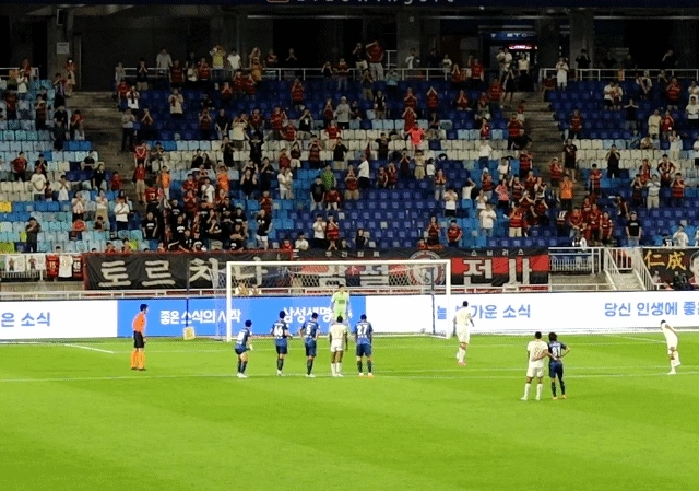 불안한 예감은 현실을 정통으로 타격했다. 후반 30분 포항의 공격 중 접촉이 일어났다. 심판은 반응이 없었지만 포항 선수들은 강하게 항의했고 접촉의 당사자인 한호강은 뒤이어 벌어질 일을 알고 있는 듯했다. VAR을 보고 들어온 심판은 PK를 선언했다.