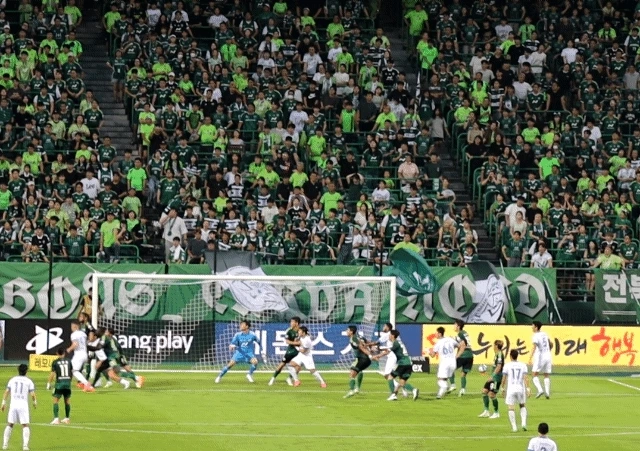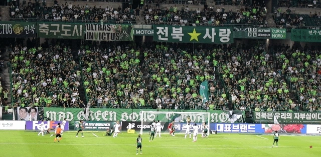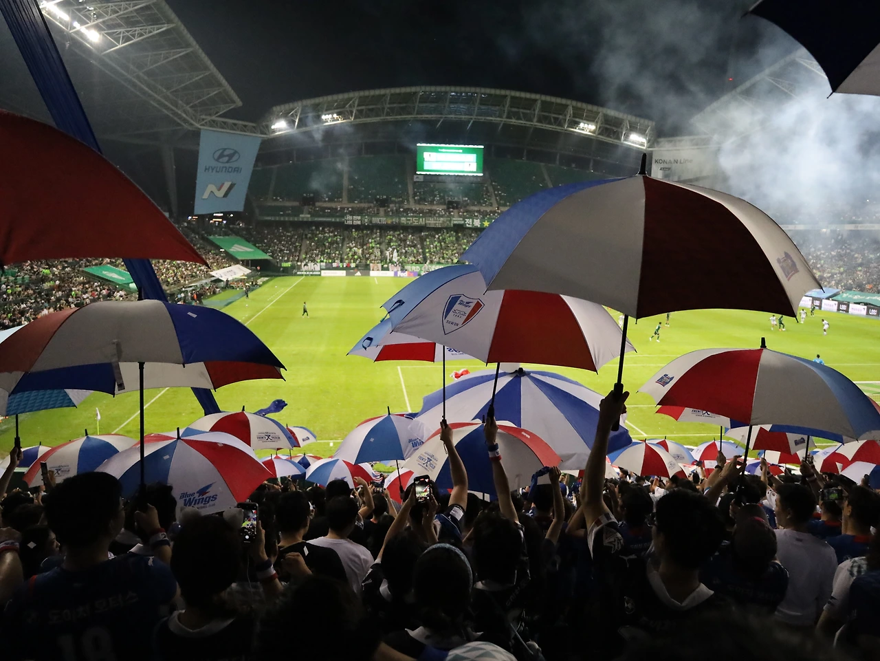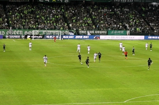 전북을 상대로, 그것도 원정에서 나온 선제골이라 원정석은 또 난리가 났다. 사람들의 머릿속은 카니발을 떠올리는 흥분과 동시에 이전의 숱한 결말들을 상기시키며 침착함을 잃지 않으려 애쓴다. 모든 설렘과 불안함은 응원의 목소리로 전환한다. 다행히 전반전은 실점 없이 끝났다.