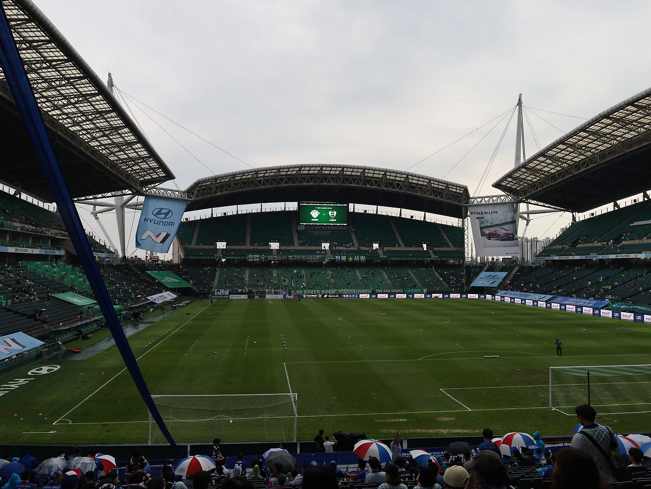 경기가 시작됐다. 그런데 초반부터 이상민 교체되고 포포는 옐로카드를 받는다. 이거 분위기가 이상하게 흘러가겠구나 싶었는데 30분에 수원의 선제골이 터졌다. 카즈키의 코너킥을 한호강이 사뿐하게 헤더로 넣어버린다.