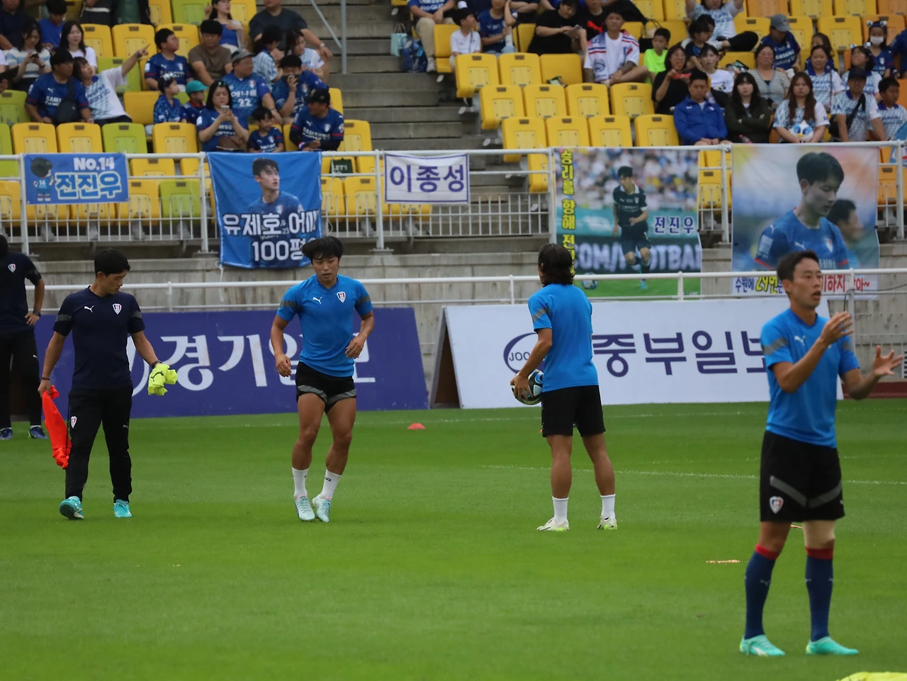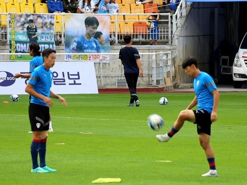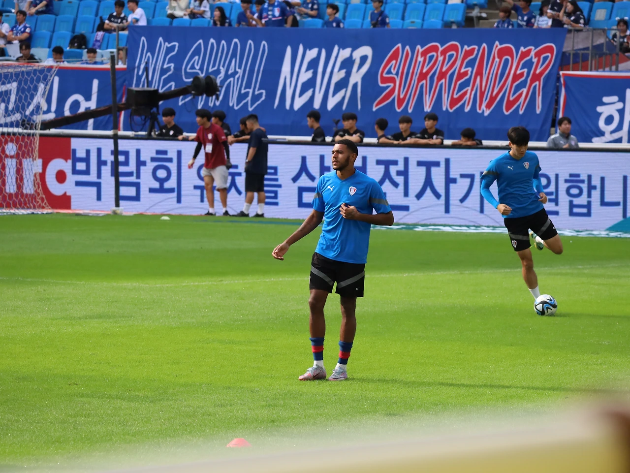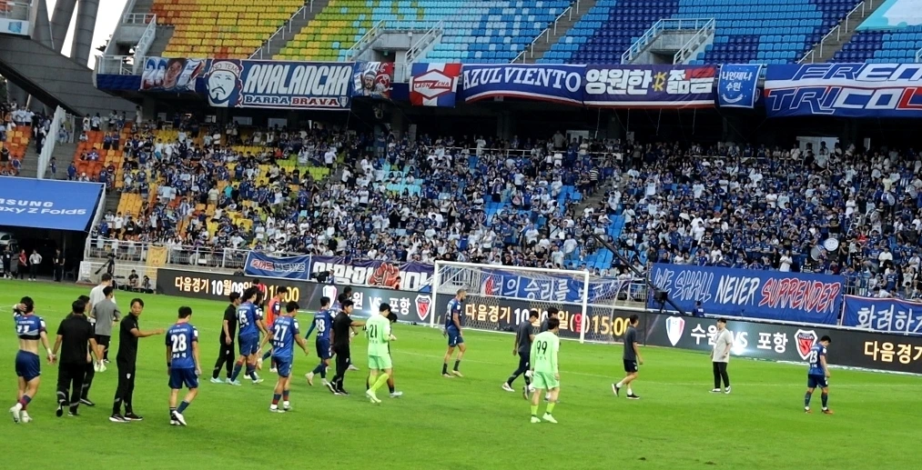 선수들이 끝인사를 할 때 N석에서는 선수들을 비난하는 응원가가 울렸다. '이따위로 축구하려면, 나가 xxx'... 선수들은 시종 고개를 숙이고 있다.