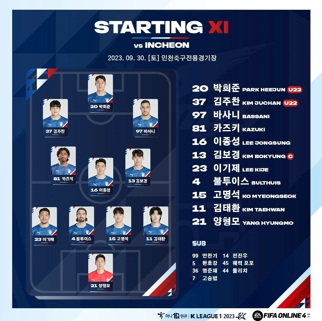 경기의 뚜껑이 열리자 나는 사실 예상보다는 대등하게 갈 수 있을 거란 인상을 받았다. 전반적인 경기 스타일이 갑자기 바뀔 수는 없는 거지만 패스나 침투가 괜찮은 날이었다고 생각한다. 그러나 항상 그랬듯이 결정적인 순간의 실수나 비결정적 소극성이 문제였다. 이기제가 요즘 욕을 먹는 이유도 가장 중요한 순간에 나오는 실책 때문에 그 외에 잘했던 플레이들이 기억에서 사라지게 만든다. 기량에서 밀린다면 공을 뺏으려고 하기보다는 길목만 넘겨주지 않고 근접에서 존재하고 있는 게 수비의 정석이다. 무고사에게 PK골을 헌납한 수비의 과정은 그런 정석을 지키지 못한 결과였다.