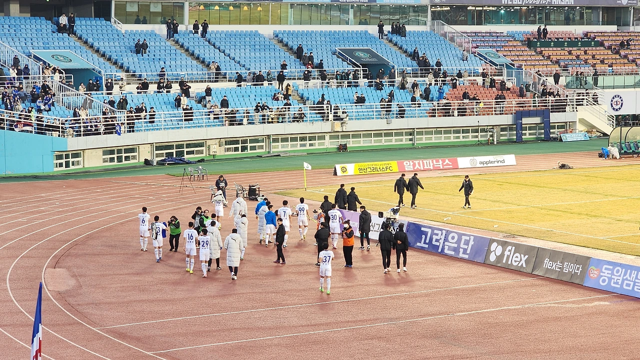 이후에도 여러 번의 찬스가 있었지만 골대를 맞히거나 의미 있는 마무리로 이어지지 못했다. 반면에 안산의 공격은 언제나 위협적이었다. 양형모가 아니었다면 실점했을 순간도 있었다. 전체적인 경기력으로는 안산을 압도했다고 말할 수 없으나 어쨌든 한 골 리드를 끝까지 지켜냈고 시즌 2승째를 달성했다.