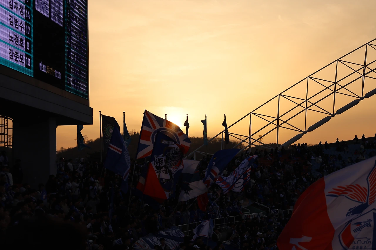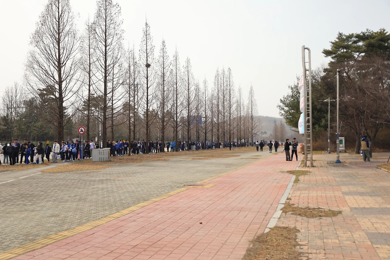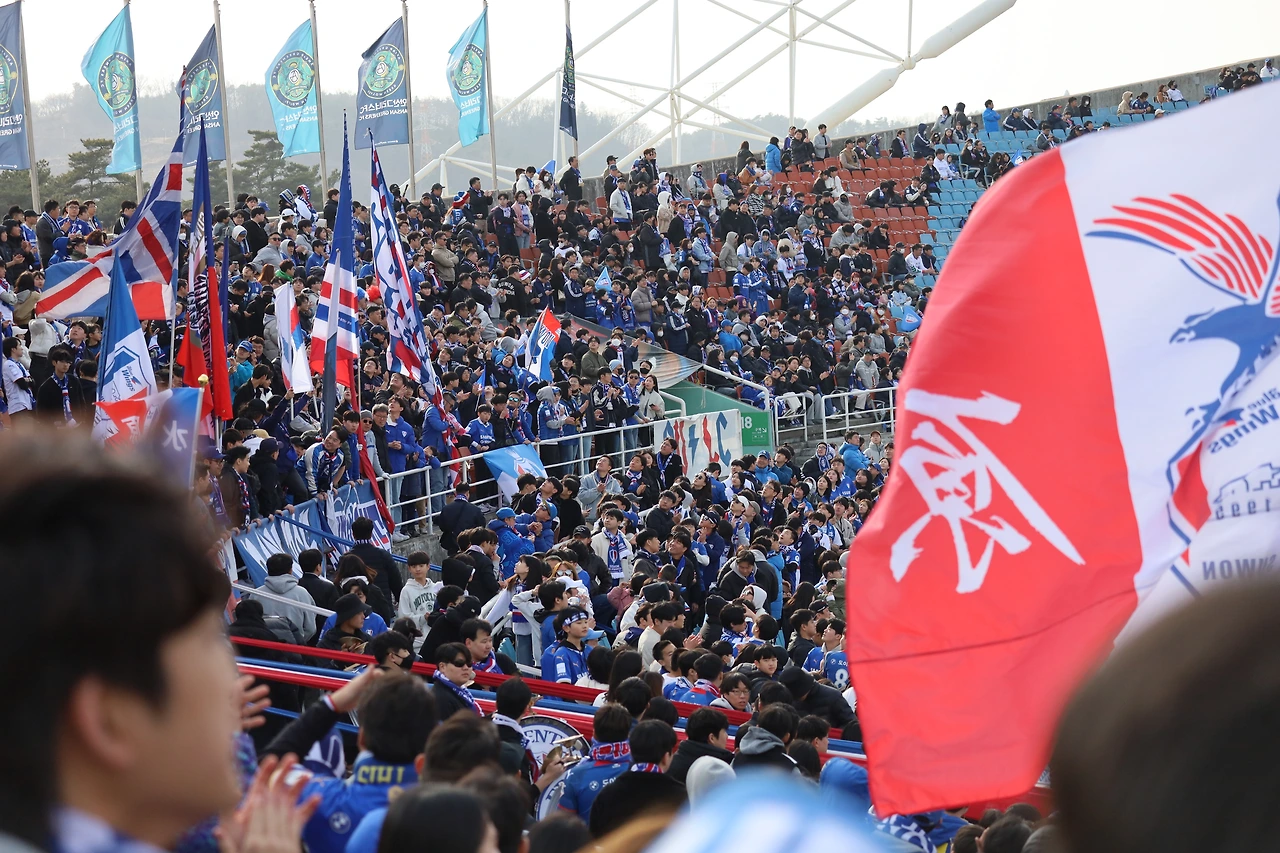 원정석 입장과 매점 운영 및 화장실까지 경기장 시설이 괜찮았다. 지정석이 아닌 것이 아쉽긴 했지만 한편으로는 자유석이라는 의미이니 서두르기만 하면 괜찮은 시야의 자리를 확보할 수 있는 장점이라 받아들인다. 그런데 바람이 몹시 매섭다. 그런 추위에도 집관보다는 현장을 찾아 나선 사람들의 마음과 내친김에 반팔 유니폼만을 입고 열정을 뽐내는 기개들 때문에 움츠러있을 수만은 없었다. 원정석이 빼곡히 채워진다.