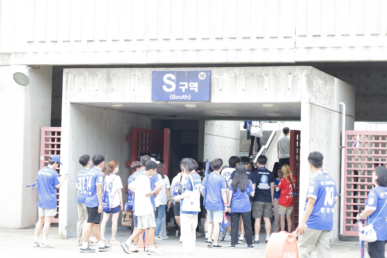 경기장에 입장 후 매점의 운영 방식을 보고 참 많은 준비를 했다는 걸 알 수 있었다. 음식을 구입하는 속도는 빅버드보다도 빨랐다. 신속함과 친절함을 보여주는 점원들은 수원의 유니폼까지 입어주는 센스까지 갖추고 계셨다. 혹시 모를 사고를 위한 보안요원들도 여러 군데 배치되어 있었다. 피치 위의 극적인 사건 외에는 어떤 사고도 일어나지 않을 것 같았다. 여러 가지 시뮬레이션을 통해 이 하루를 대비해 온 사람들의 노고에 감사드린다.