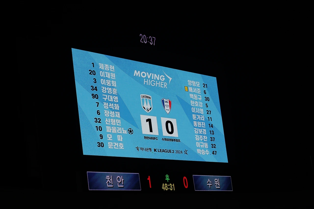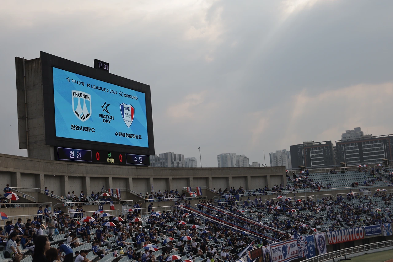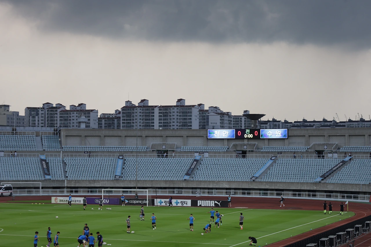 원정석은 자유석이라 마음에 드는 자리에 앉기 위해 세 시간 전에 들어갔다. 무지 덥고 습했다. 경기가 시작되자 덥고 습함은 더 심해졌다. 수원의 공격은 자주 끊겼고, 천안의 선수들은 개인기와 스피드가 탄탄하여 위협적인 기회를 자주 만들어냈다. 무엇보다 뮬리치가 골을 못 넣는다. 골대도 맞힌다. 세 골 정도는 넣을 수 있던 찬스들이 지나고 나니 전반 종료 직전 천안에게 골을 먹혔다.