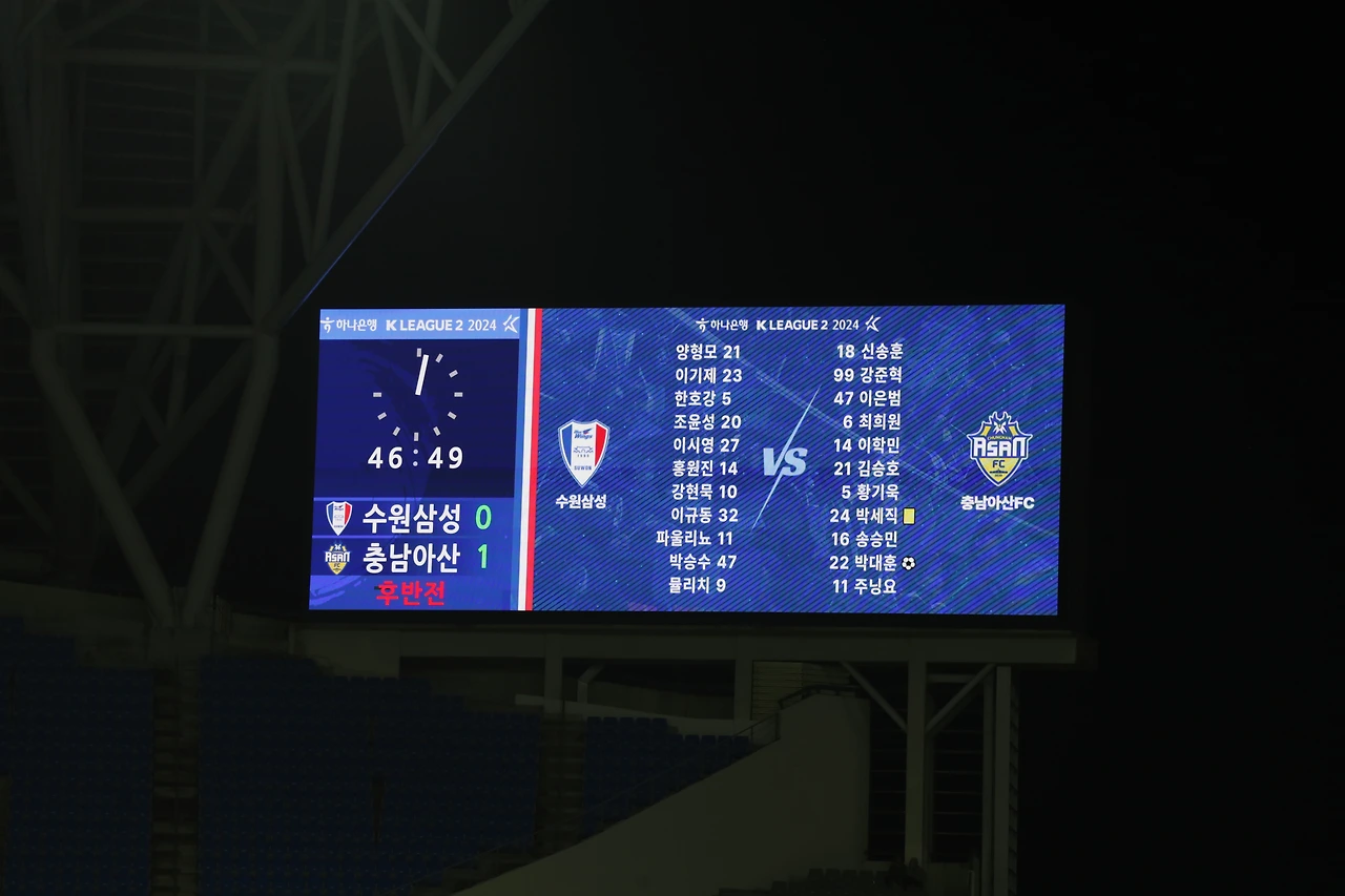 시간이 흐른다. 석연치 않은 심판 판정으로 어수선한 와중에도 시간은 흐른다. 김상준과 배서준이 투입됐다. 시간이 계속 흐른다. 정규시간이 다 채워지고 추가시간 7분이 주어진다. 4분, 5분, 그리고 6분째를 찍는다. 이제 1분도 남지 않았다. 충남아산의 공격 중 수원이 볼을 가로챘다. 마지막 공격임을 직감한 관중들이 자리에서 일어난다.