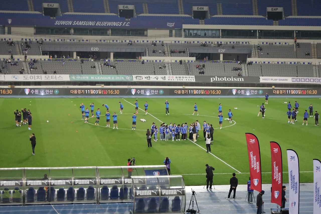 37라운드를 치르는 수원과 충남아산 모두 단 두 경기만을 남겨놓은 상황이다. 수원은 반드시 이겨야 5위안에 들 수 있는 가능성을 보존하고, 충남아산도 반드시 이겨야 1위를 노려볼 수 있는 가능성이 유지된다. 두 팀 다 절실한 상황에 처했다. 그래서 팬들이 많을 거라 예상하여 경기장에 네 시간 전에 갔지만 평일이라 그런지 관중수가 많진 않았다.