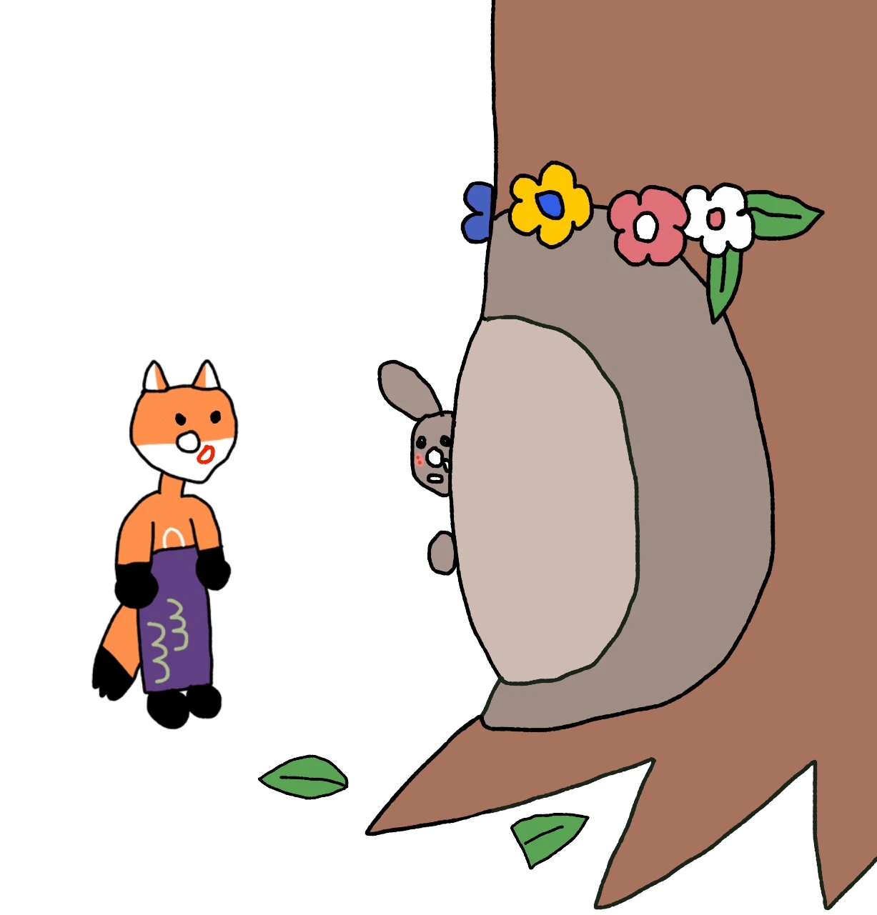 안녕? 조조가 먼저 인사하고 붉은여우도 안녕? 하고 대답해.