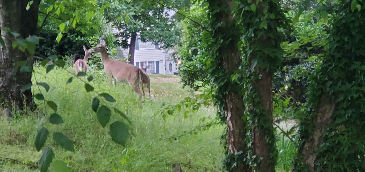 사슴은 항상 무리 지어 다닌다. 집 뒤쪽 숲에서 살고 있는 이 사슴은 볼 때마다 여러 명이 항상 함께 움직였다. 이른 새벽뿐만 아니라 날이 밝은 시간에도 종종 동네 주변을 어슬렁 거린다.