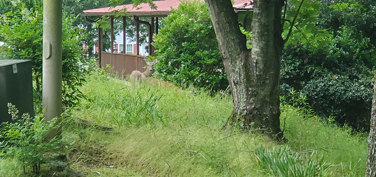 이른 새벽 동이 틀 무렵 아직 완전하게 날이 밝지 않아, 밖은 어둑어둑했다. 새벽 운동을 하려고 밖을 나서는 순간, 집 앞에 큰 사슴 하나가 여유 있게 나를 쳐다보고 있다.