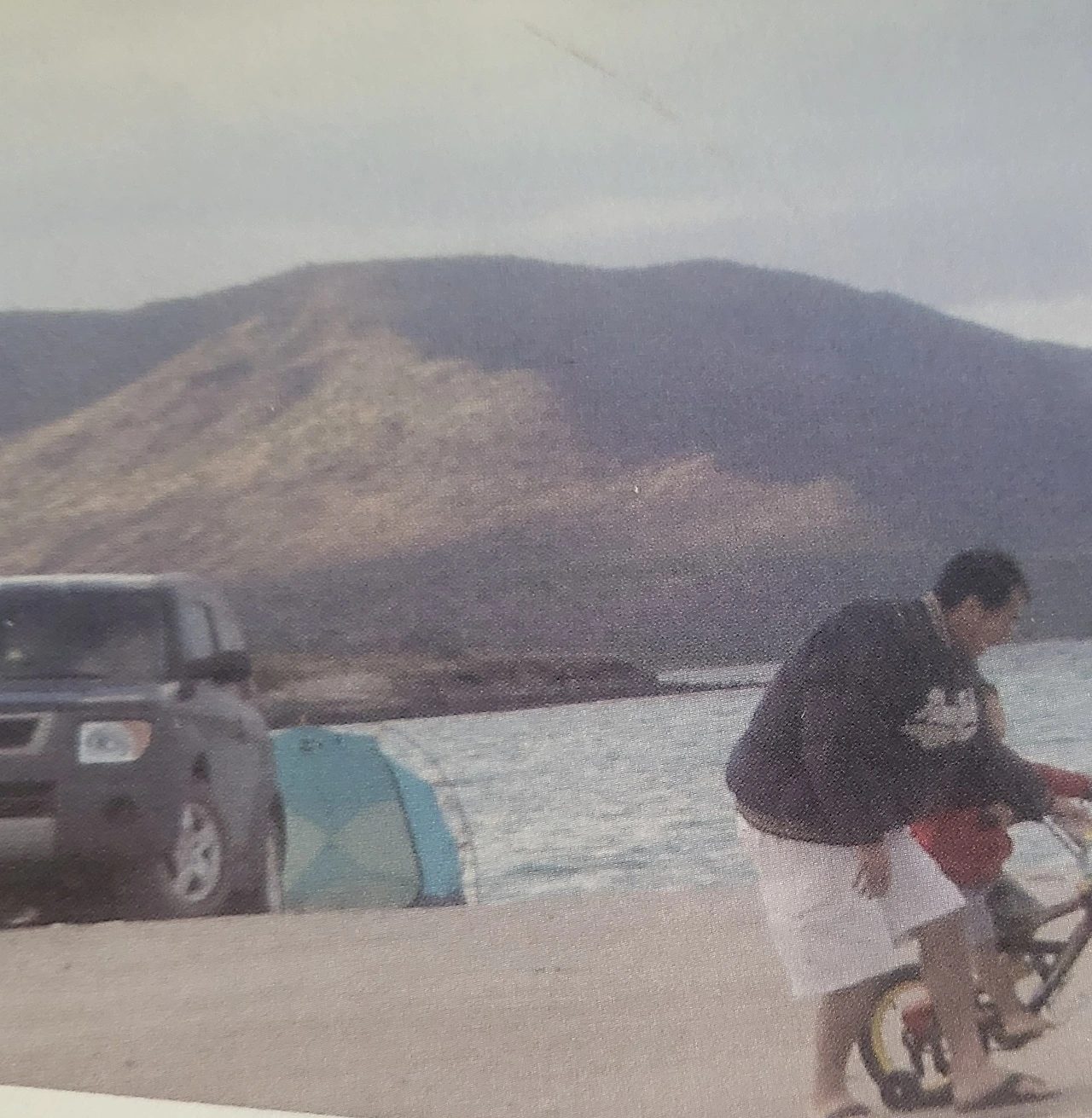 사진이 잘 나오는 뷰 포인트를 찾아 찍은 사진이 우연히도 찾아간 책방에 진열되어 있던 멕시코 여행책의 표지를 장식하고 있는 그 사진과 똑같았을 때, 이곳은 나에게뿐만이 아니라 멕시코에서도 절경인 곳으로 유명한 곳임을 알 수 있었다. 비치는 하나의 길을 사이에 두고 바다와 조용한 호수 같은 두 개의 물가가 만나고 있었다. 그곳에서 텐트를 치고 하룻밤을 묵어가기로 즉흥적으로 계획을 잡았다. 남편은 이제 갓 자전거를 배우기 시작한 아들에게 자전거를 태우고 고즈넉한 저녁 바닷가에 서 작은 행복감을 가져다주는 또 다른 풍경을 만들고 있었다.